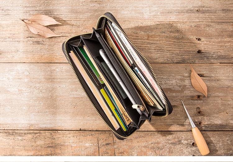 Cool Black Leather Mens Zipper Clutch Wallet Long Wallet Black Cell Phone Long Wallet for Men