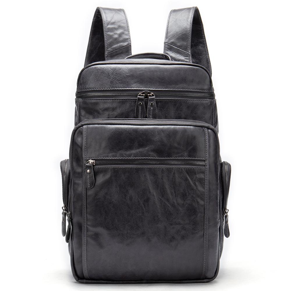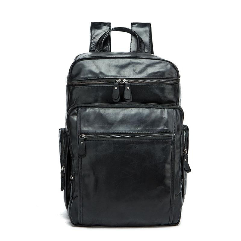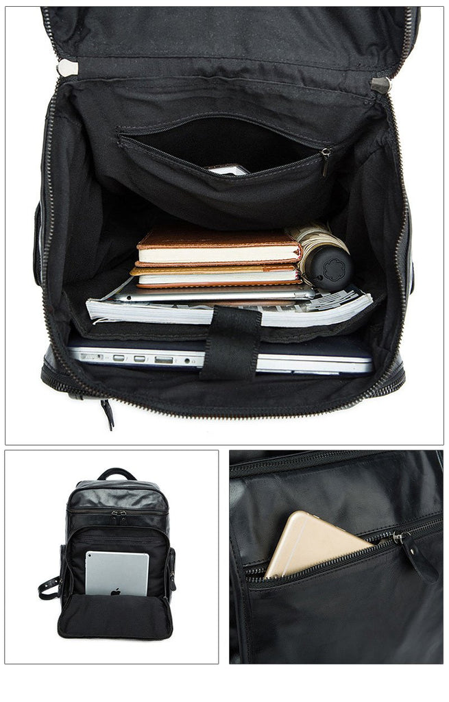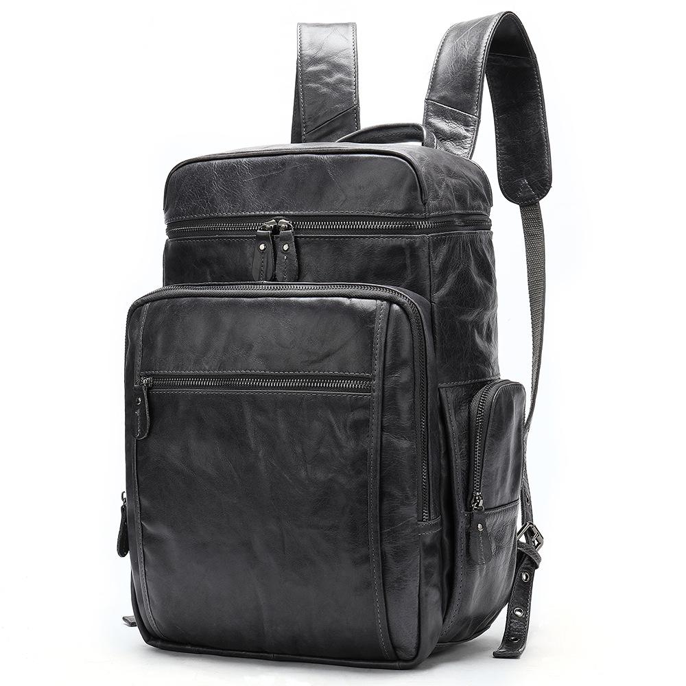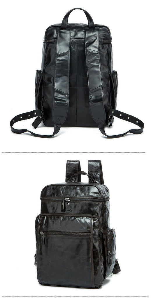 Cool Black Mens Leather 15 inches Large School Laptop Backpack Dark Brown Travel Backpack for Men