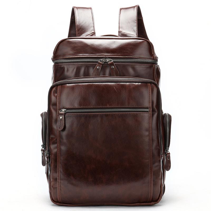 Style: Cool Brown Mens Leather 15 inches Large School Backpack Dark Brown Travel Backpack for Men