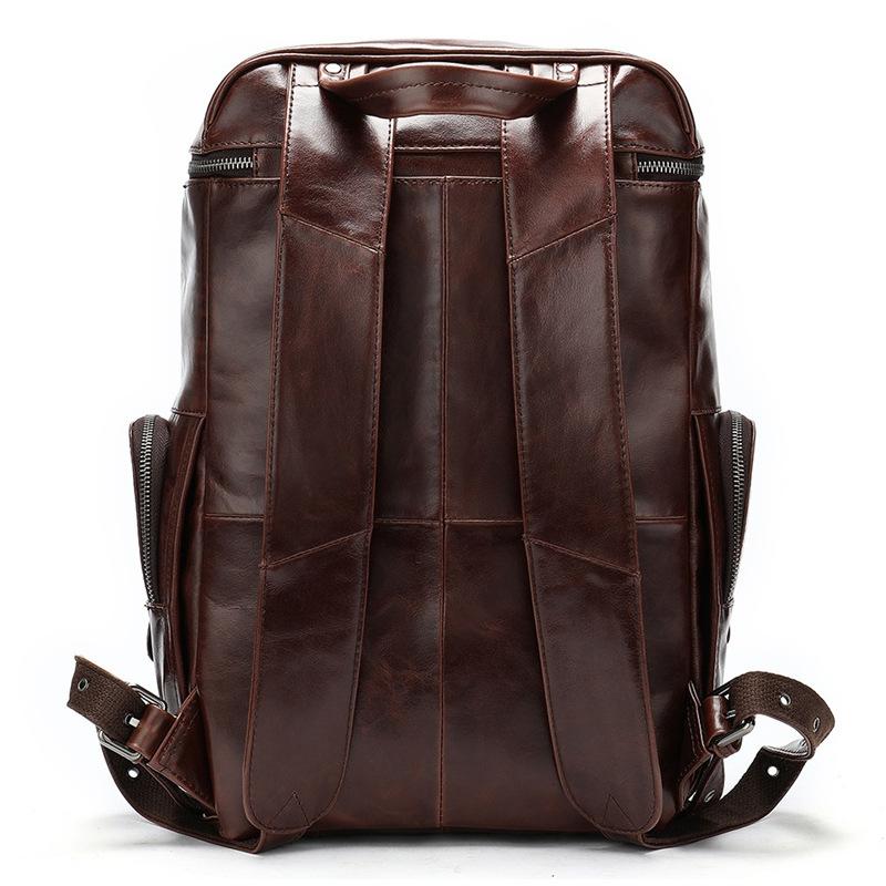 Design: Cool Brown Mens Leather 15 inches Large School Backpack Dark Brown Travel Backpack for Men