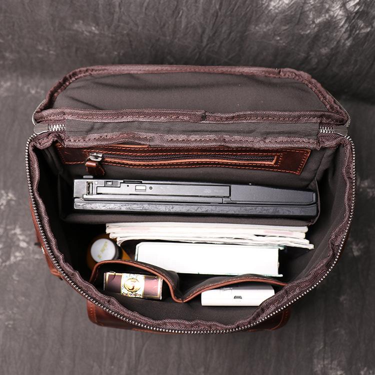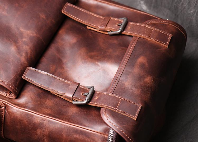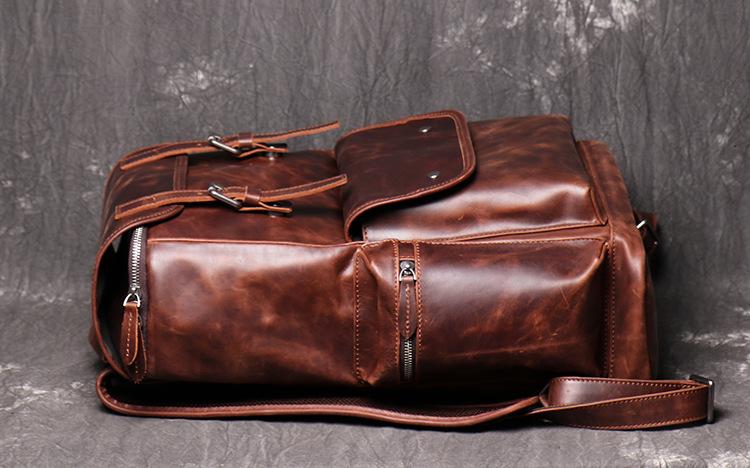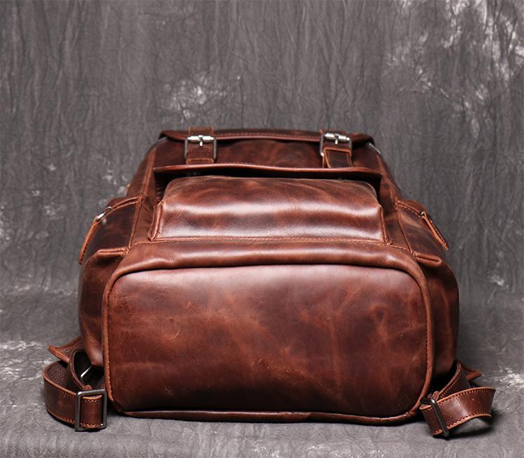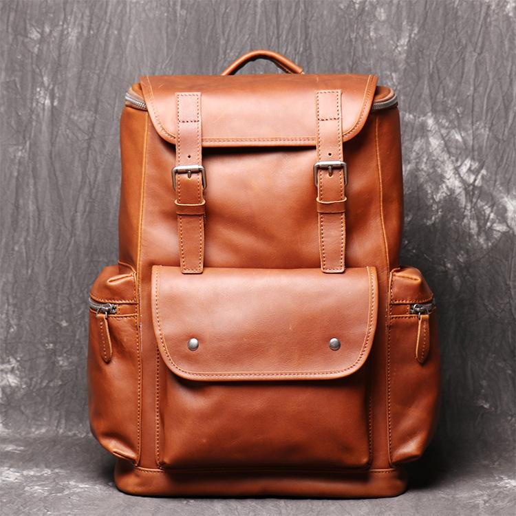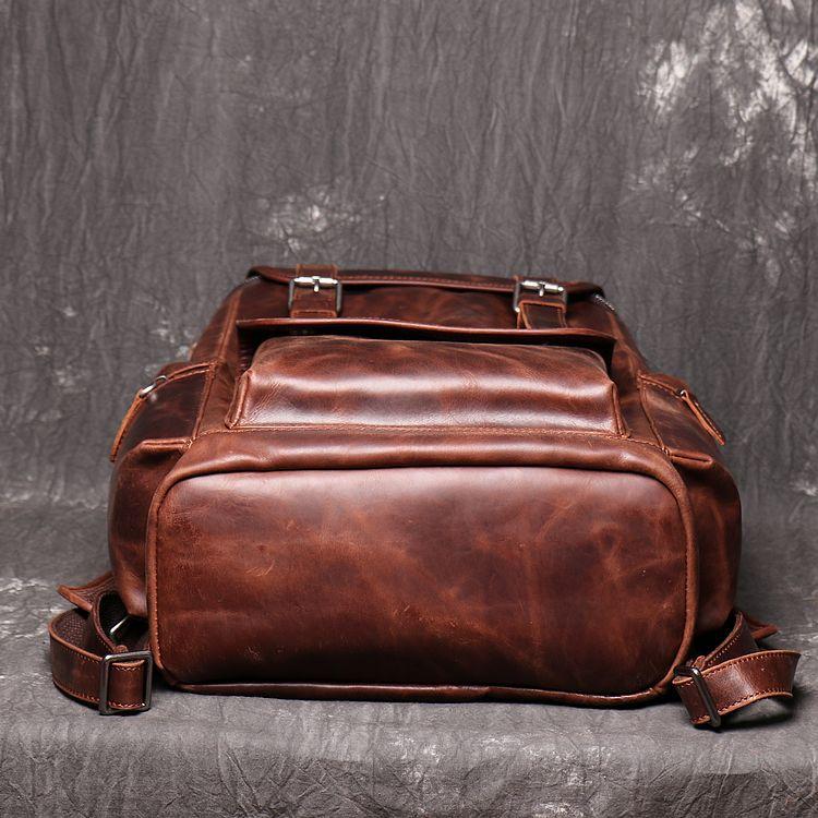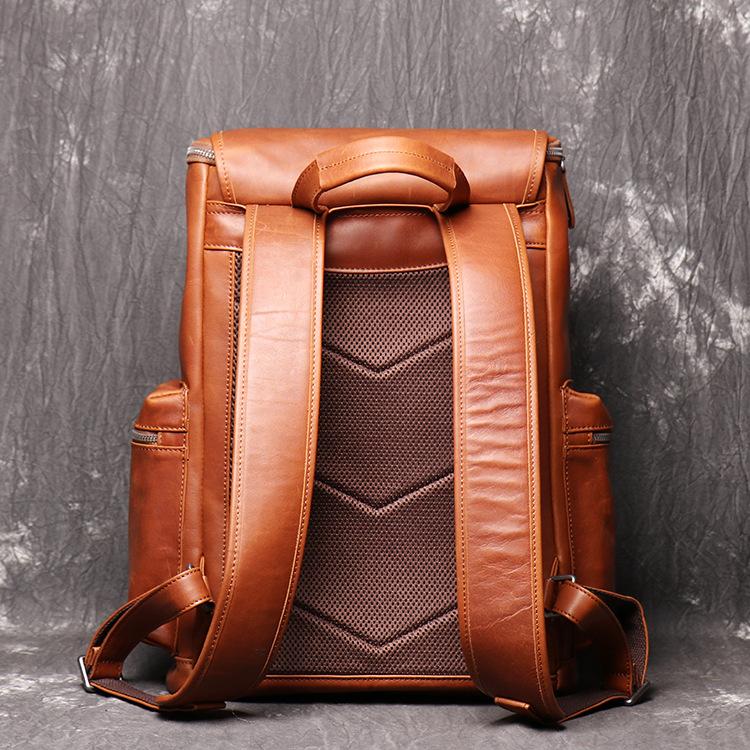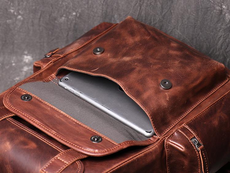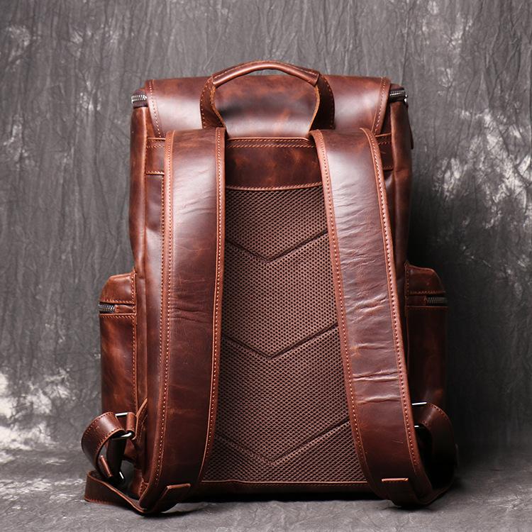 Design: Cool Brown Mens Leather 14 inches Red Brown Large Backpack Travel Backpack for MenOverview:
