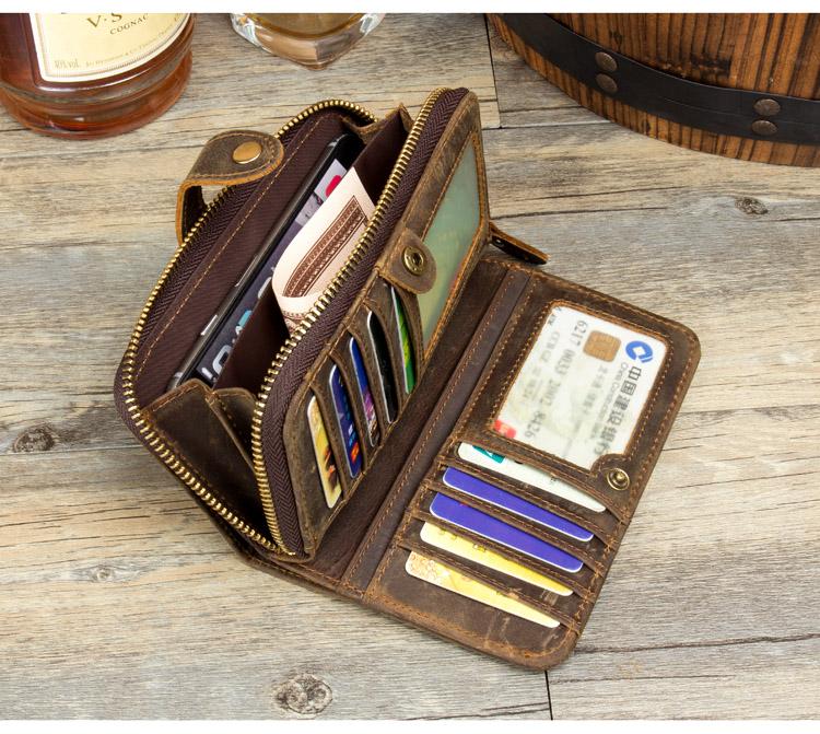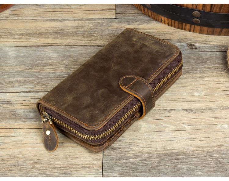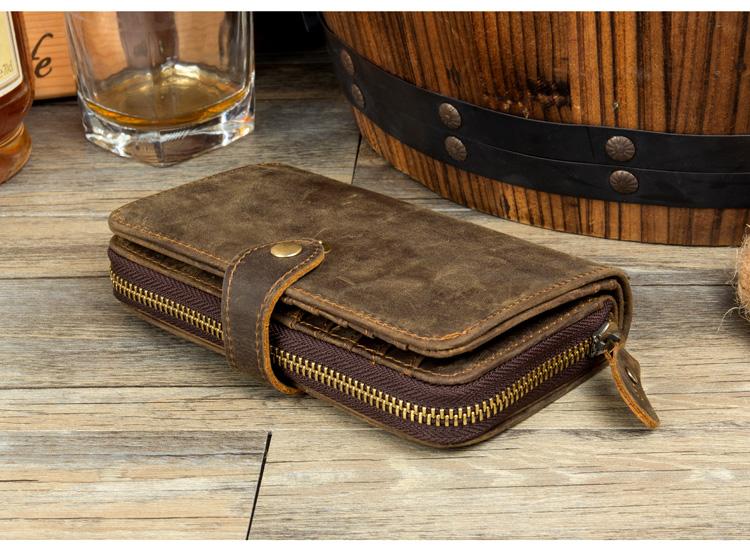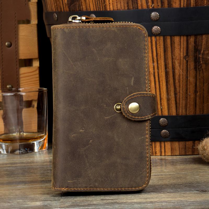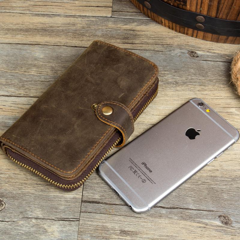 Design: Brown Cool Mens long Wallet Wristlet Bag Clutch Bag Mobile Bags for Men