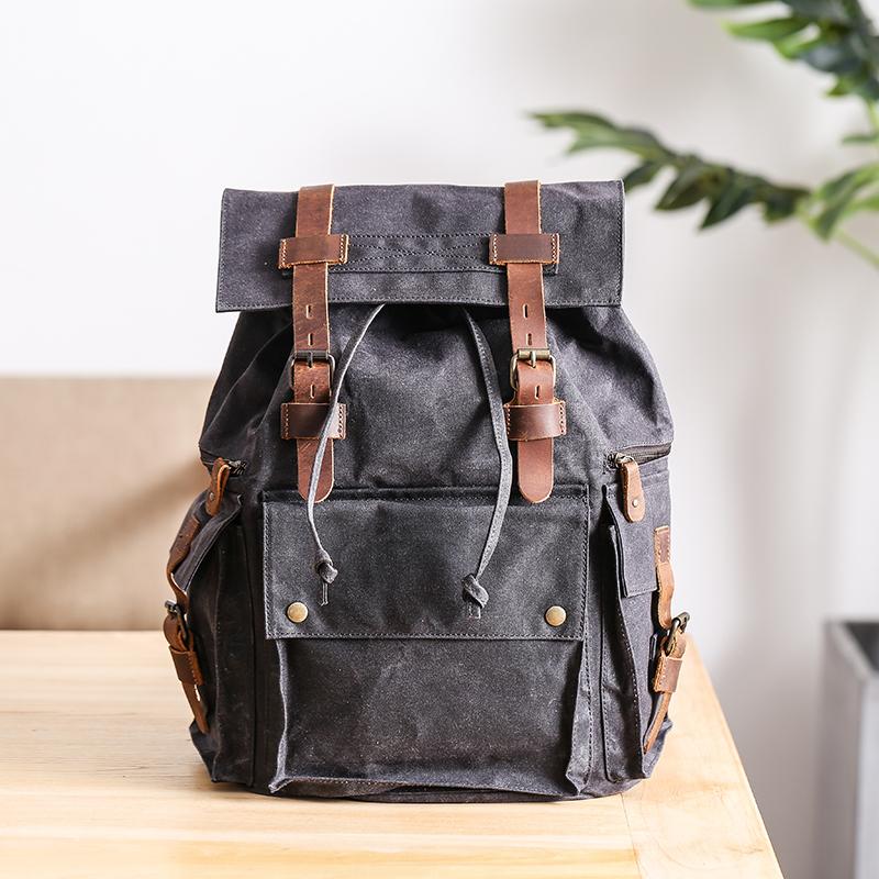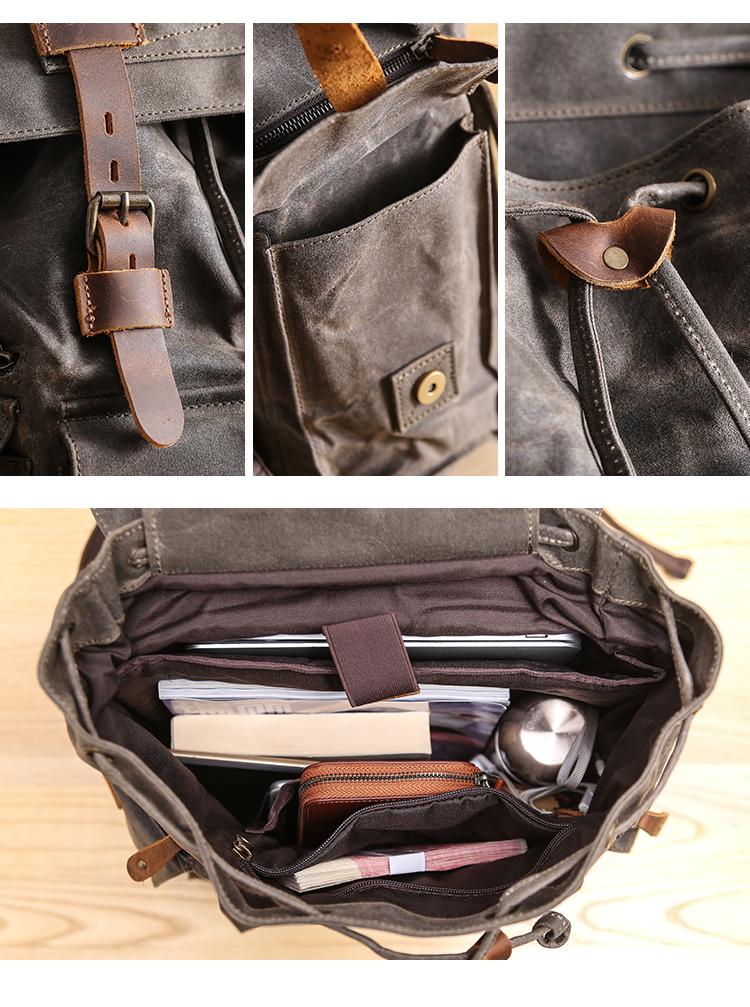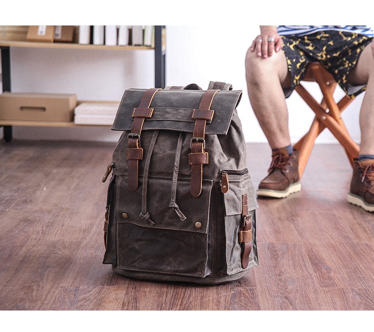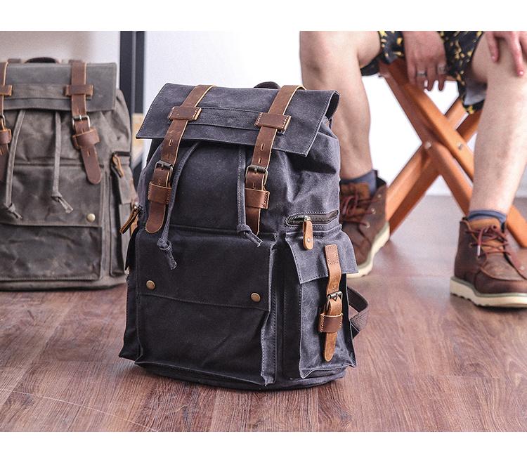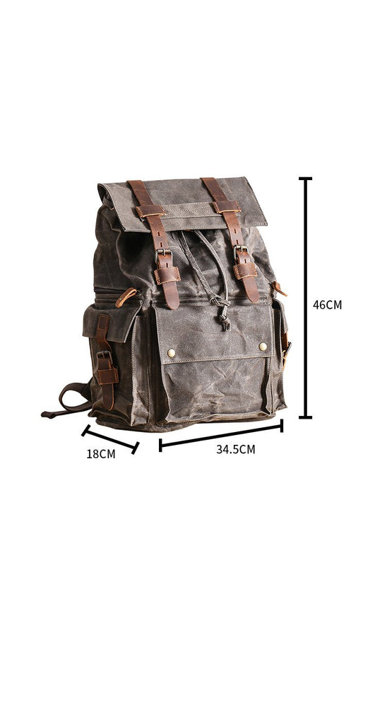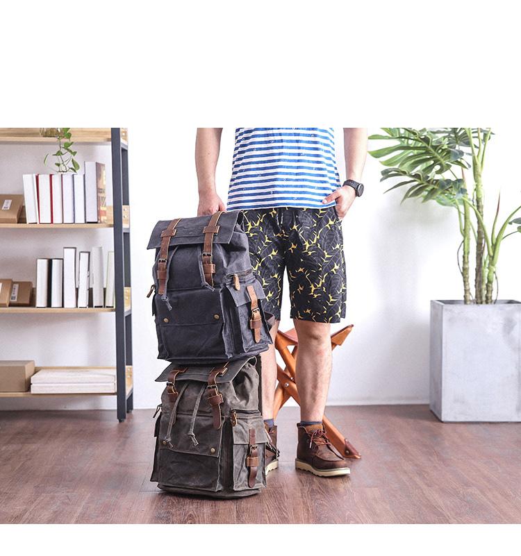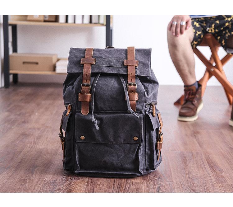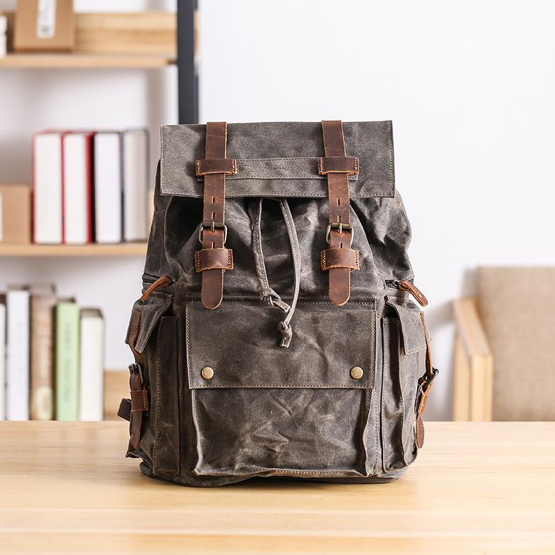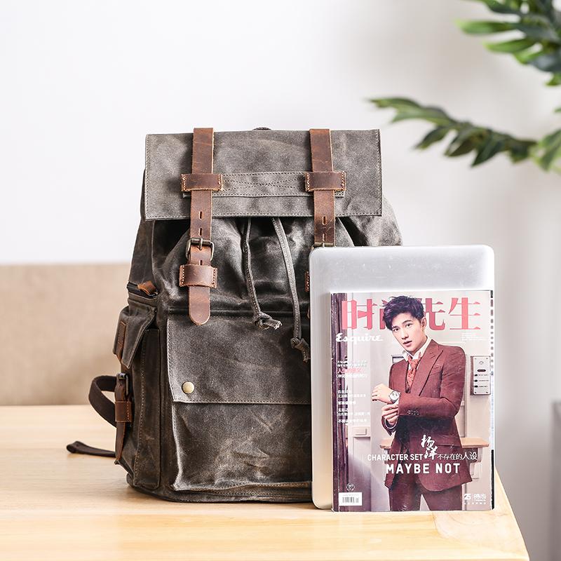 Style: Cool Canvas Leather Mens Waterproof Shoulder Bag Large Backpack Travel Backpack College Bag for Men