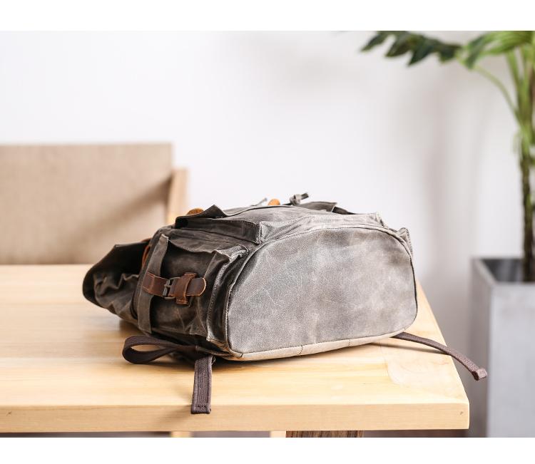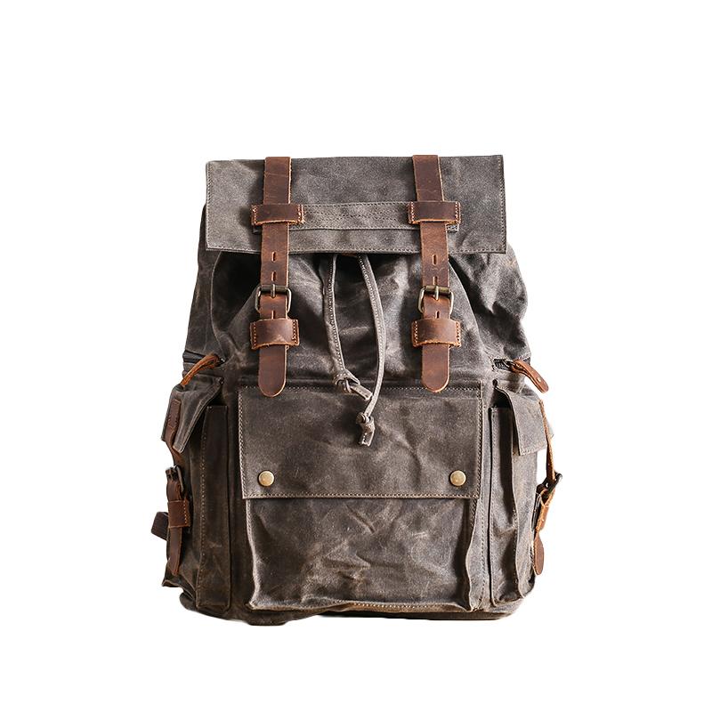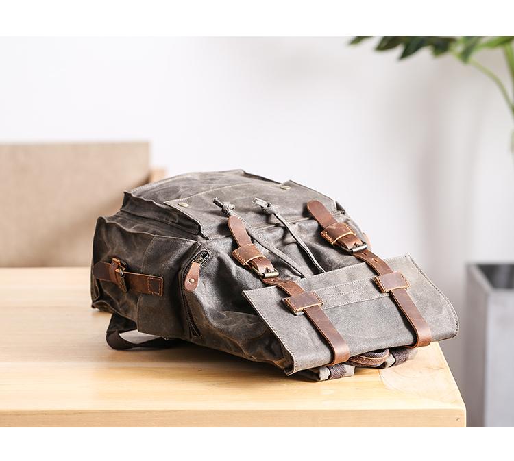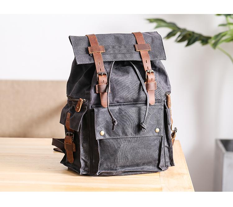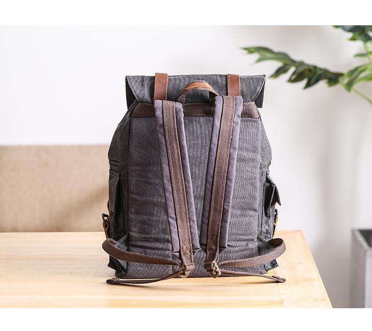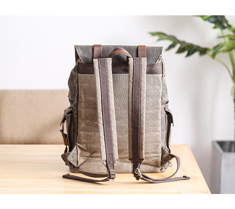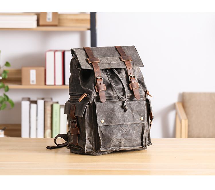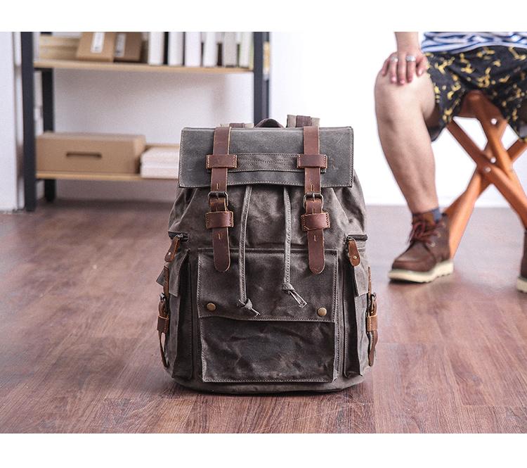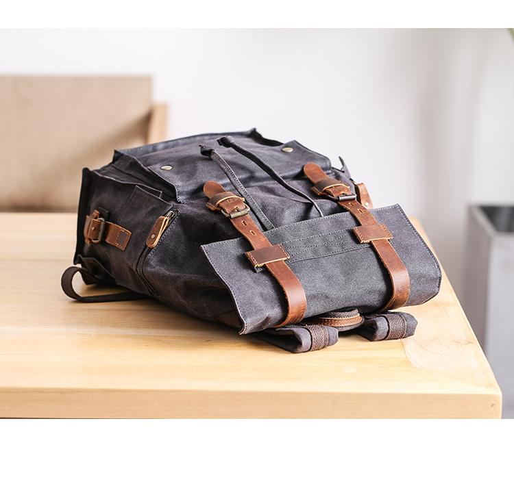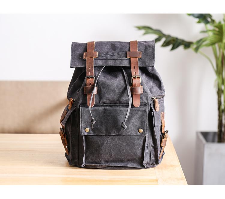 Style: Cool Canvas Leather Mens Waterproof Shoulder Bag Large Backpack Travel Backpack College Bag for Men