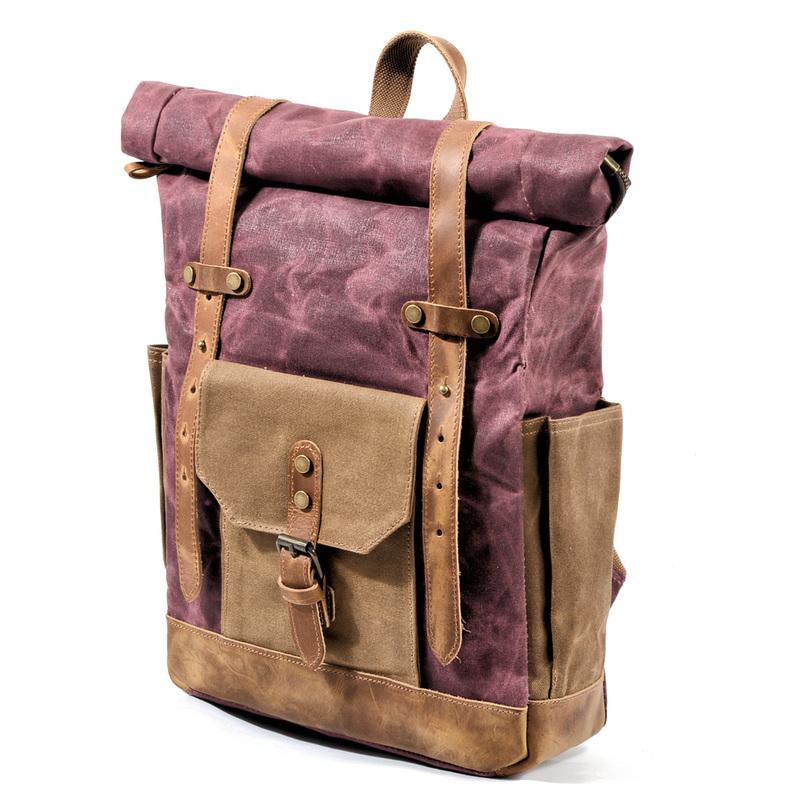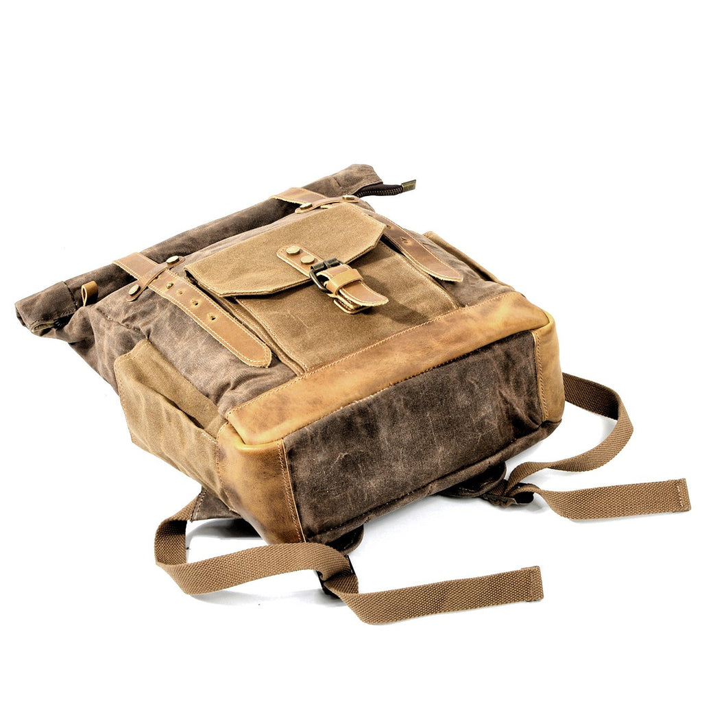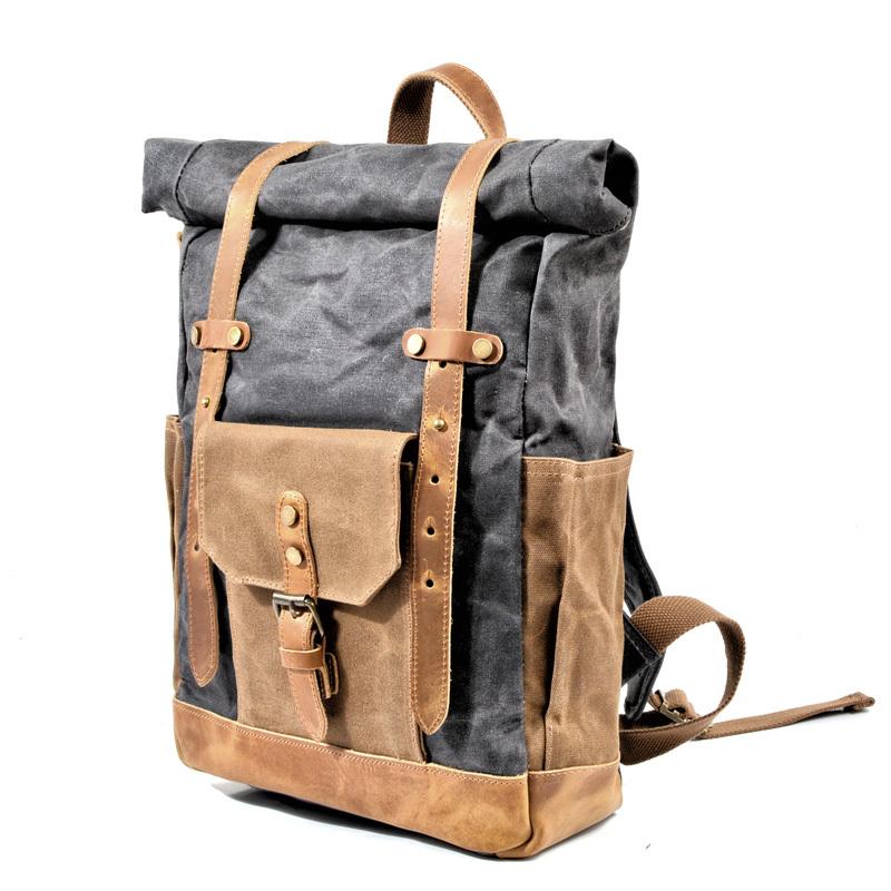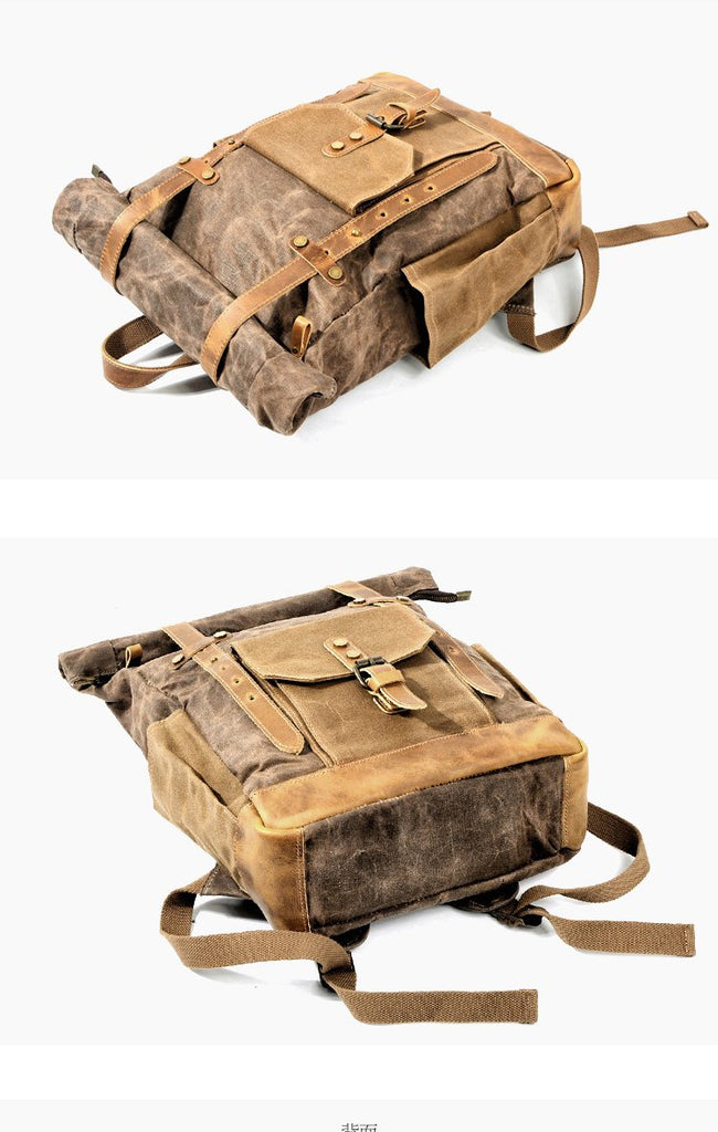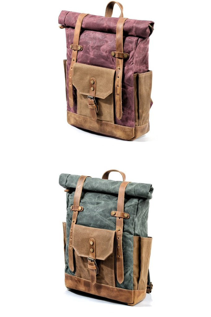 Style: Cool Canvas Leather Mens Green Large Waterproof Travel Backpack Computer Hiking Backpack for Men