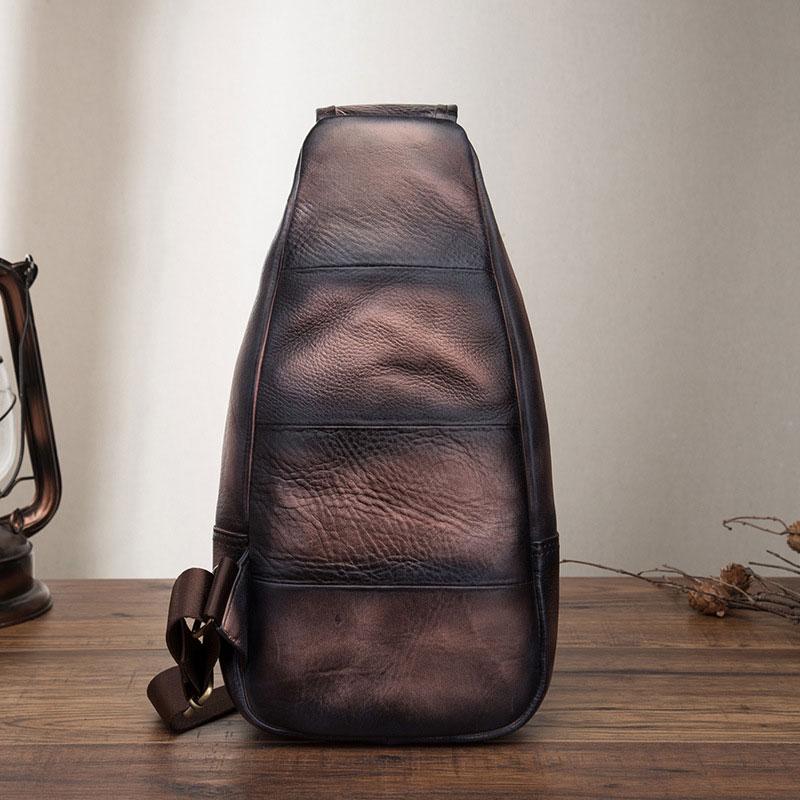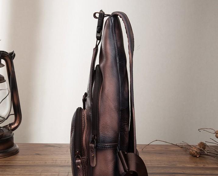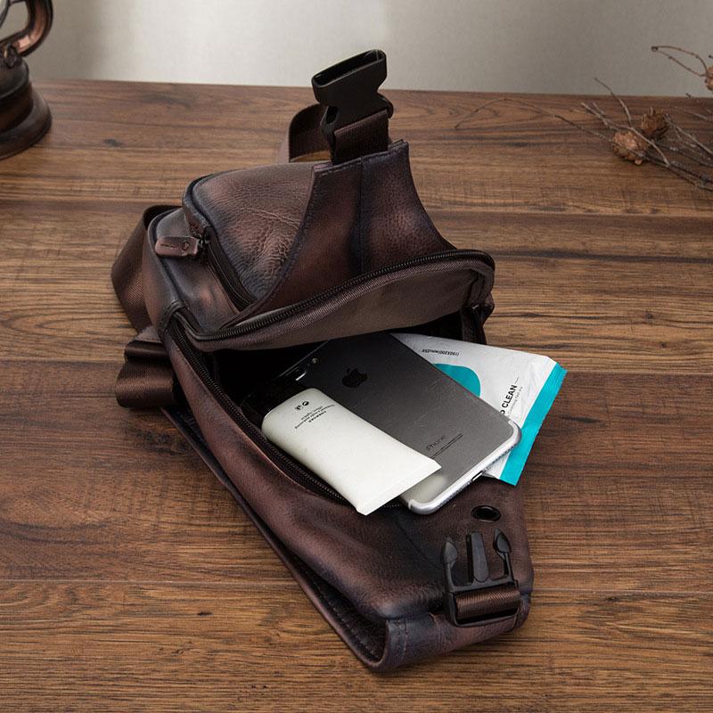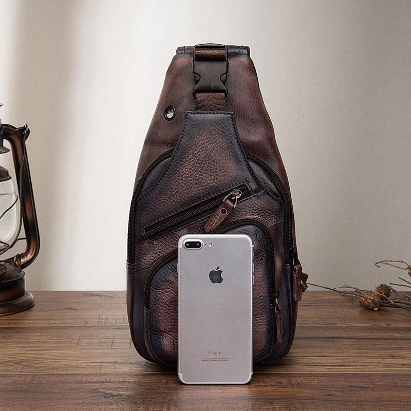 Style: Genuine Leather Cool Chest Bag Sling Bag Crossbody Bag Travel Bag Hiking Bag For Mens