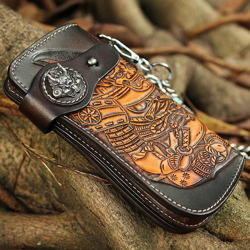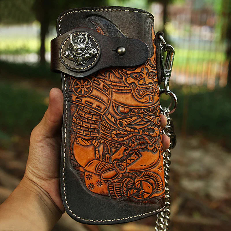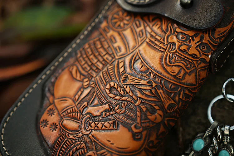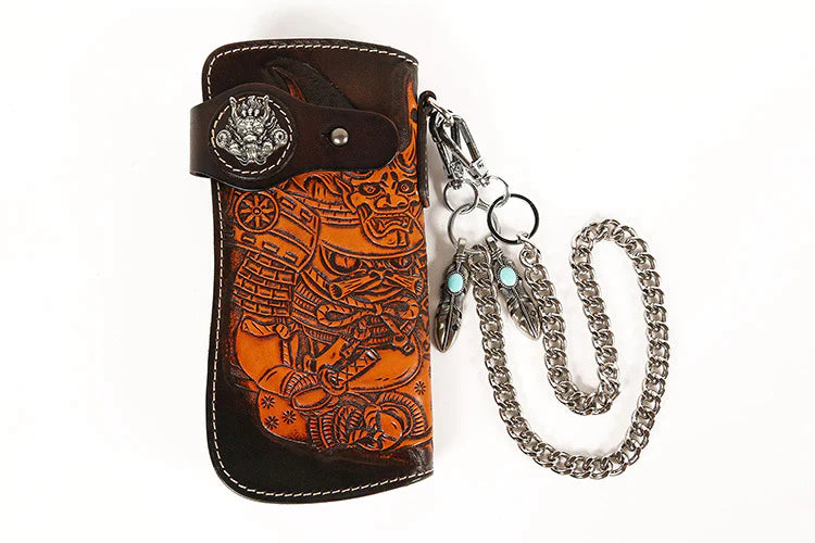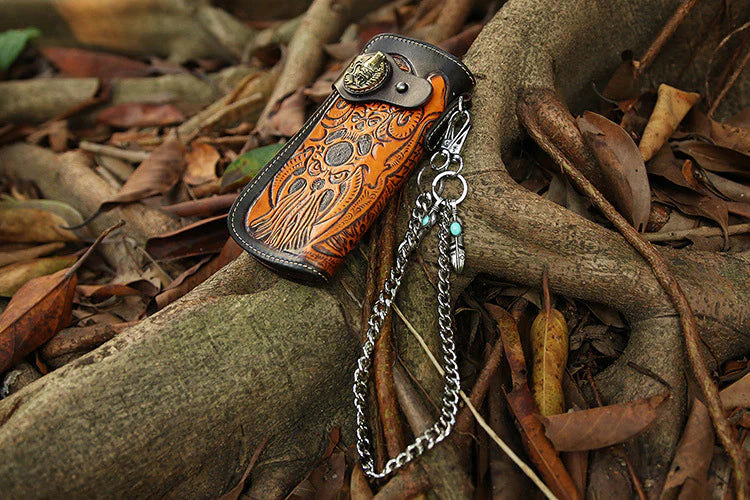 Style: Cool Leather Devil Cthulhu Tooled Biker Wallet Handmade Chain Wallet for Men