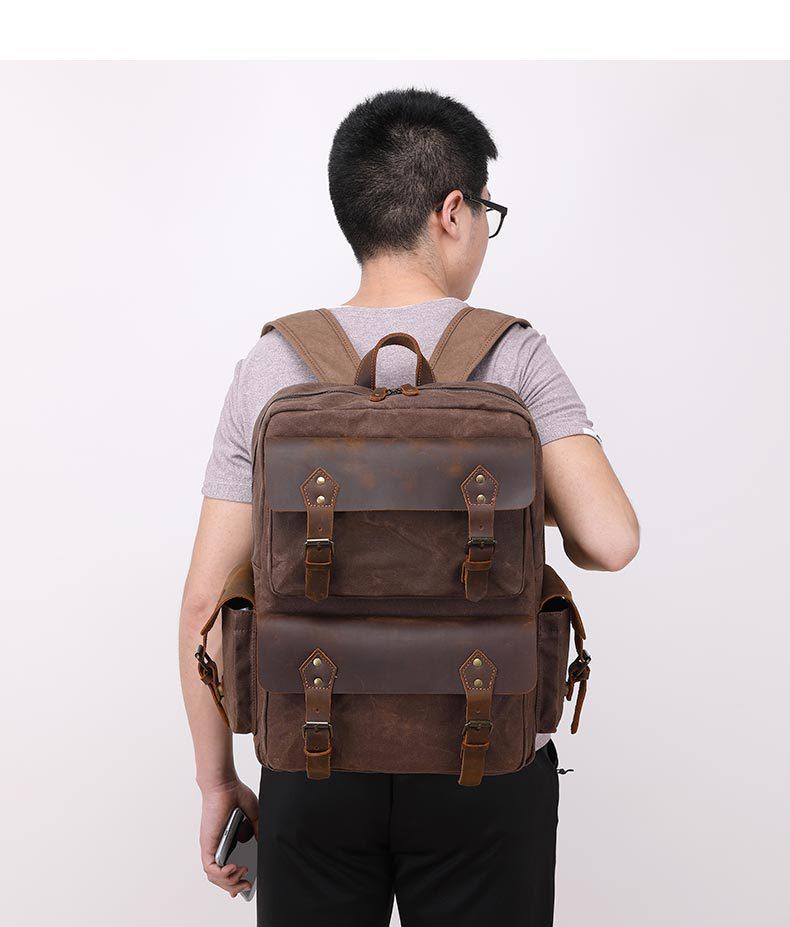 Design: Cool Leather Mens 14 inches Brown Backpack Large Cool Vintage Large Travel Backpack Bag for Men