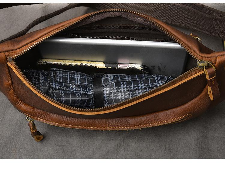 Design: Cool Leather Mens 8" Large Brown Fanny Pack Waist Bag Hip Bag Chest Bag for Men