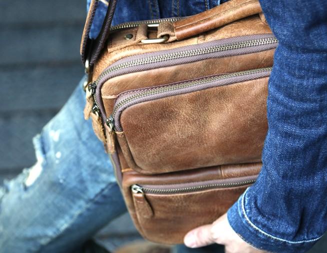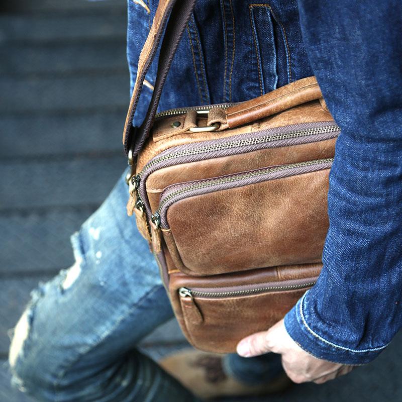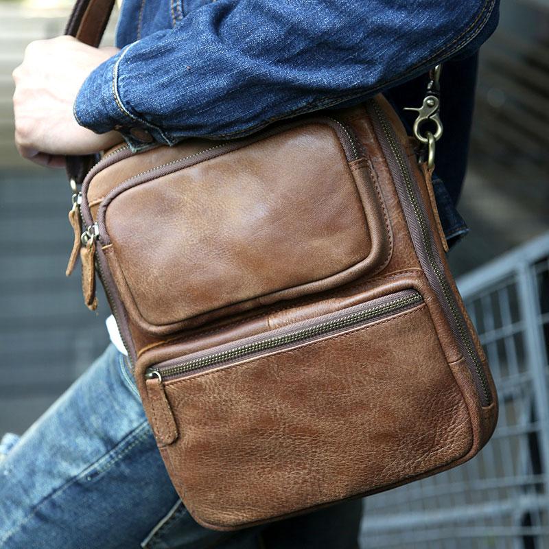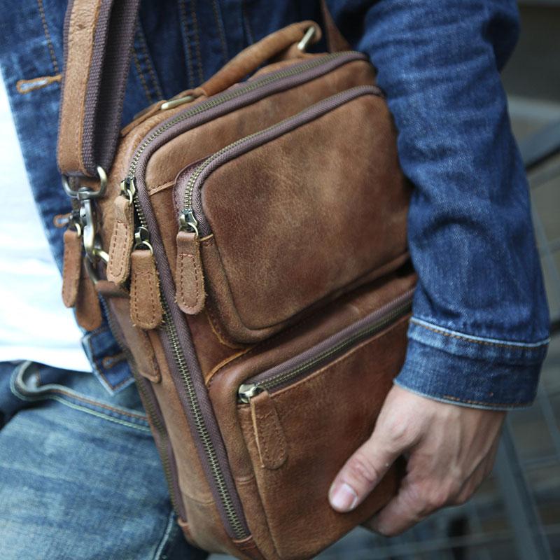 Design: Cool Leather Mens Small Handbags Messenger Bags Shoulder Bag for men