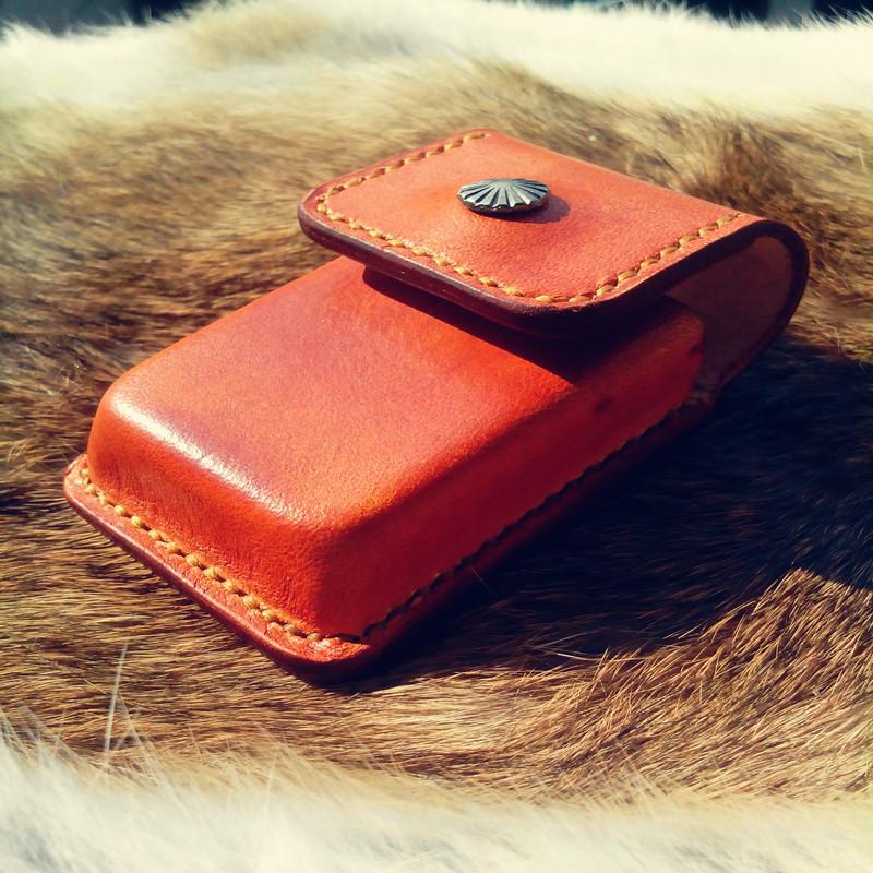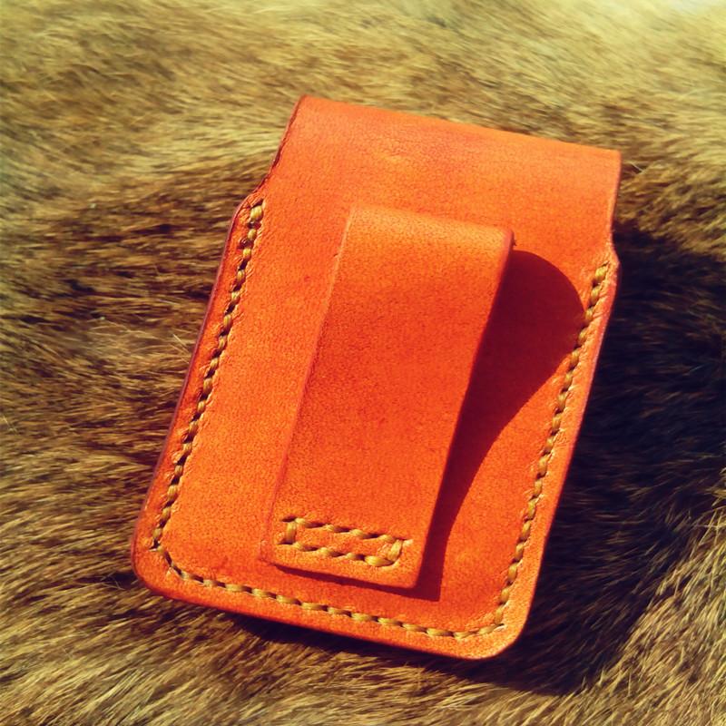 Design: Cool Mens Brown Leather Zippo Lighter Cases with Loop Zippo lighter Holder with clips