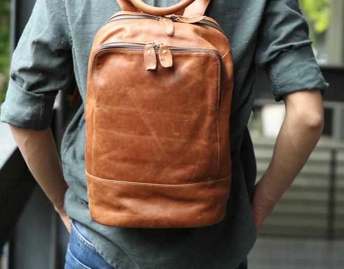 Design: Cool Mens Leather Backpack Travel Backpack Laptop Backpack for men