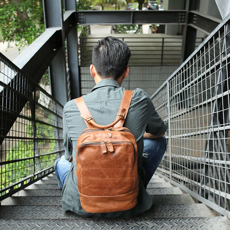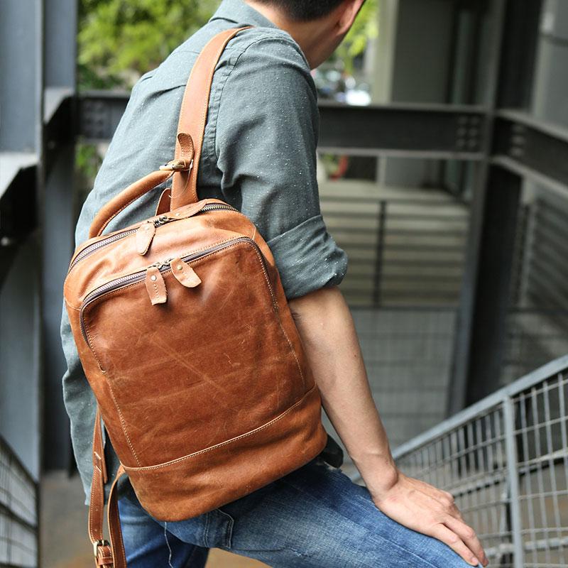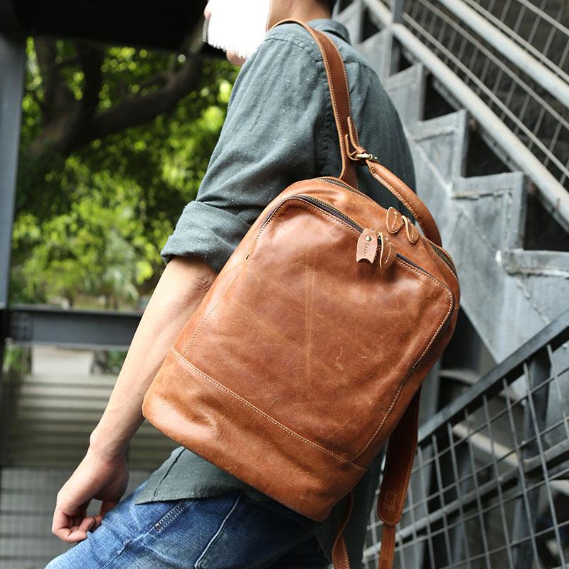 Style: Cool Mens Leather Backpack Travel Backpack Laptop Backpack for men