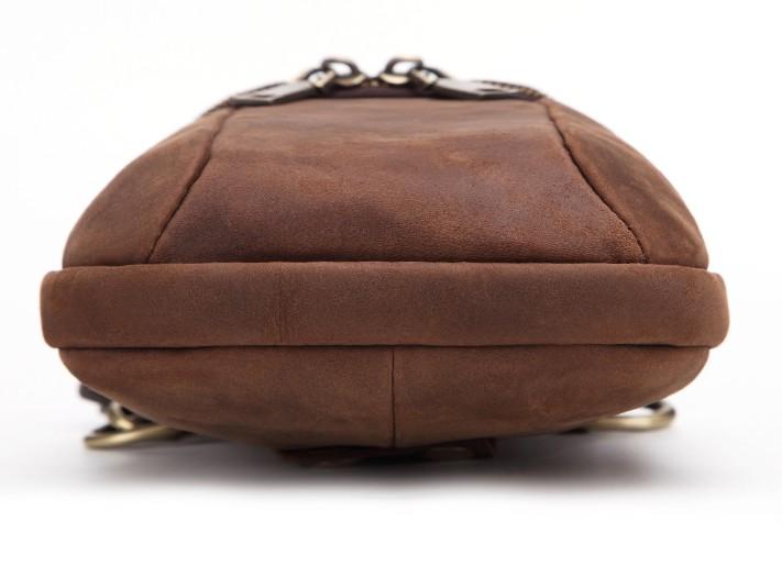 Style: Cool Brown Mens Leather One Shoulder Backpack Chest Bag Sling Bags For Men