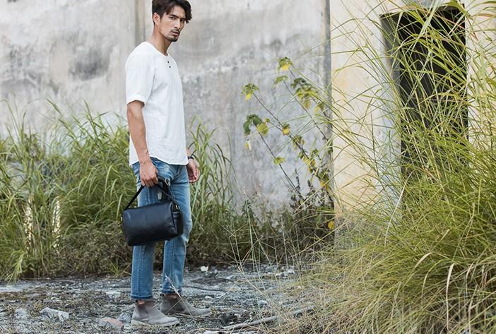 Style: Cool Small Leather Black Mens Messenger Bags Shoulder Bags for Men