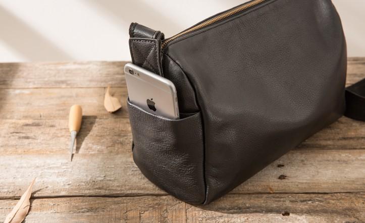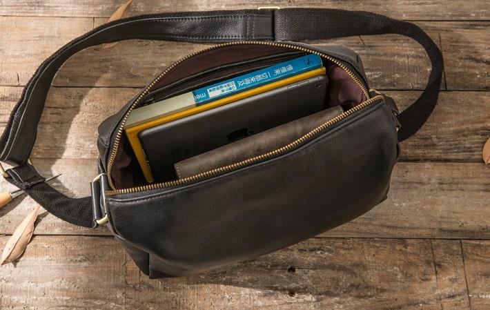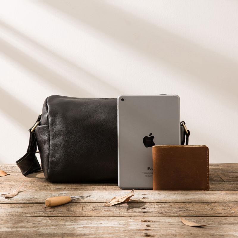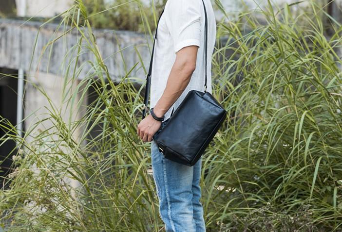 Design: Cool Small Leather Black Mens Messenger Bags Shoulder Bags for Men