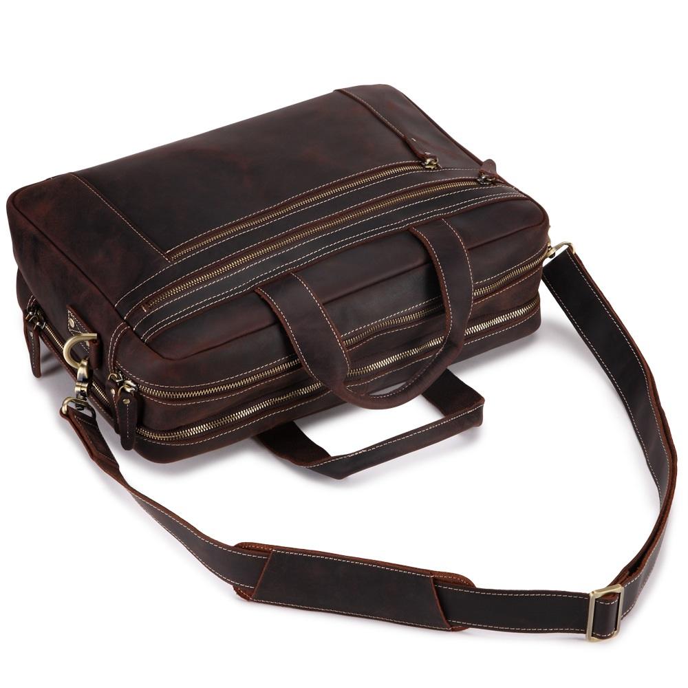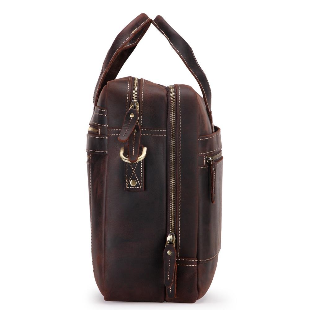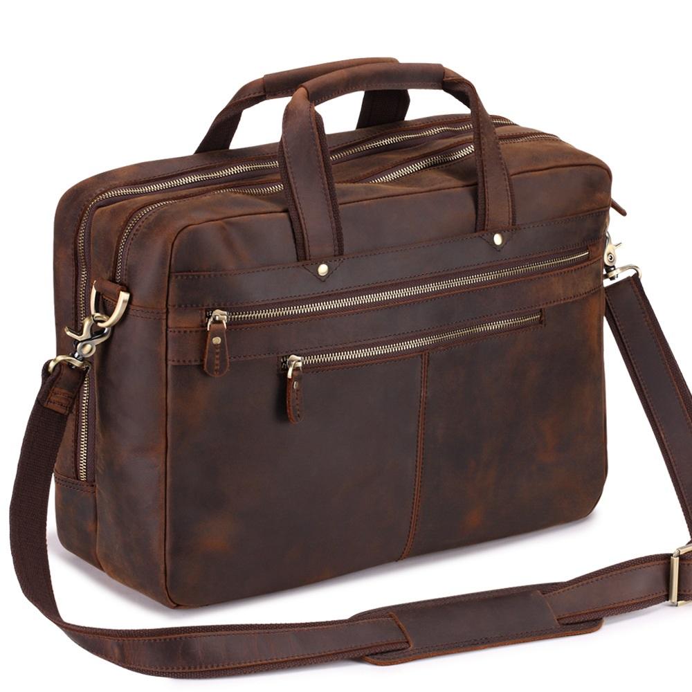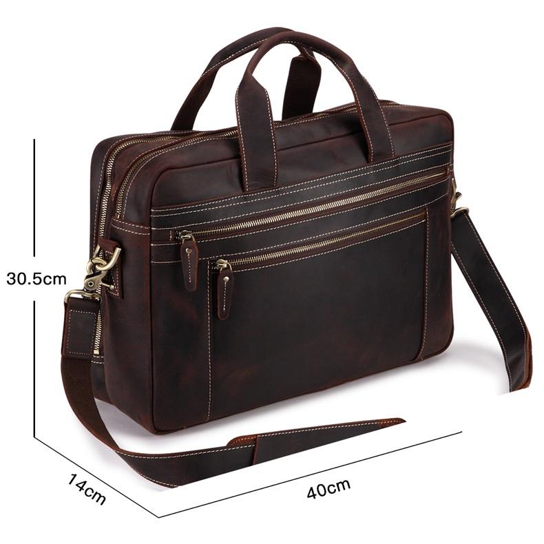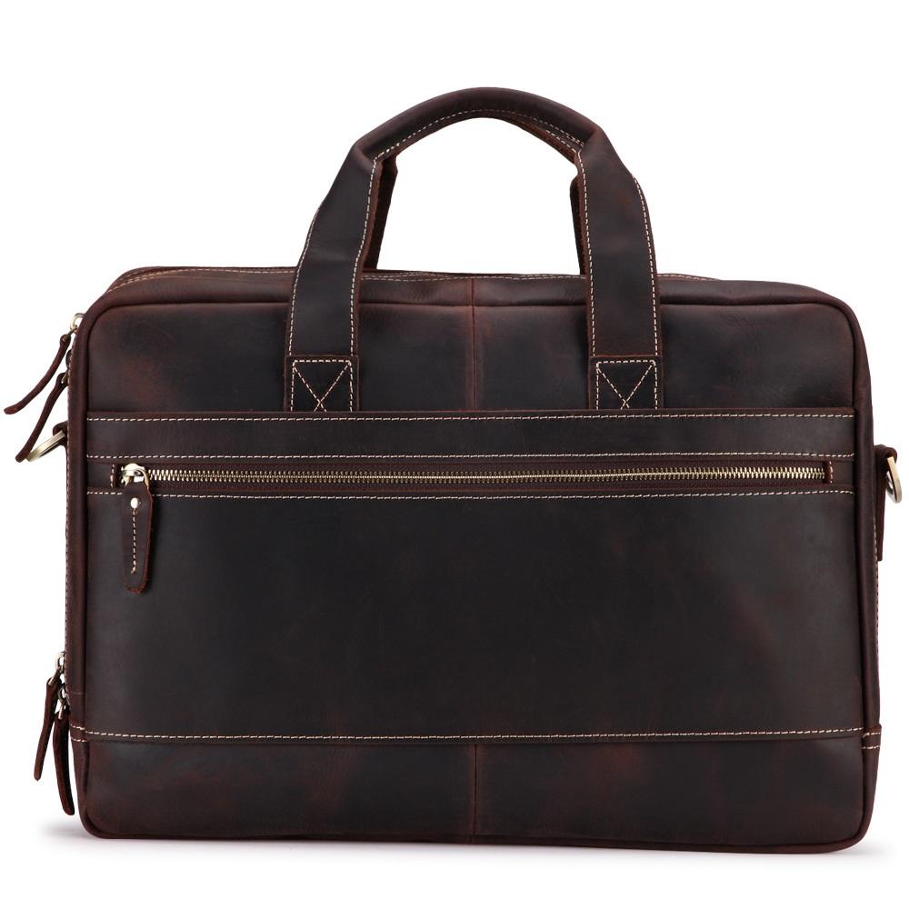 Design: Dark Brown Canvas Leather Men's Professional Briefcase 17‘’ Laptop Handbag Brown Business Bag For Men
