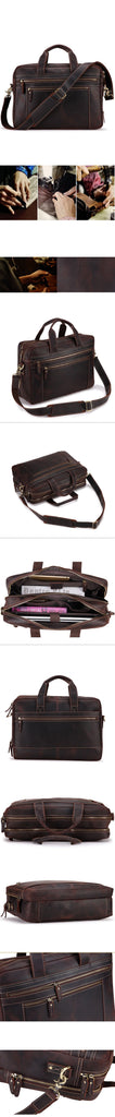 Design: Dark Brown Canvas Leather Men's Professional Briefcase 17‘’ Laptop Handbag Brown Business Bag For MenOverview: