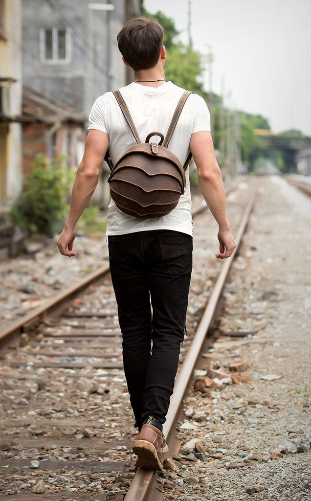Style: Dark Brown Fashion Mens Leather 10-inch Computer Backpacks Cool Beetle Backpacks School Backpack for men