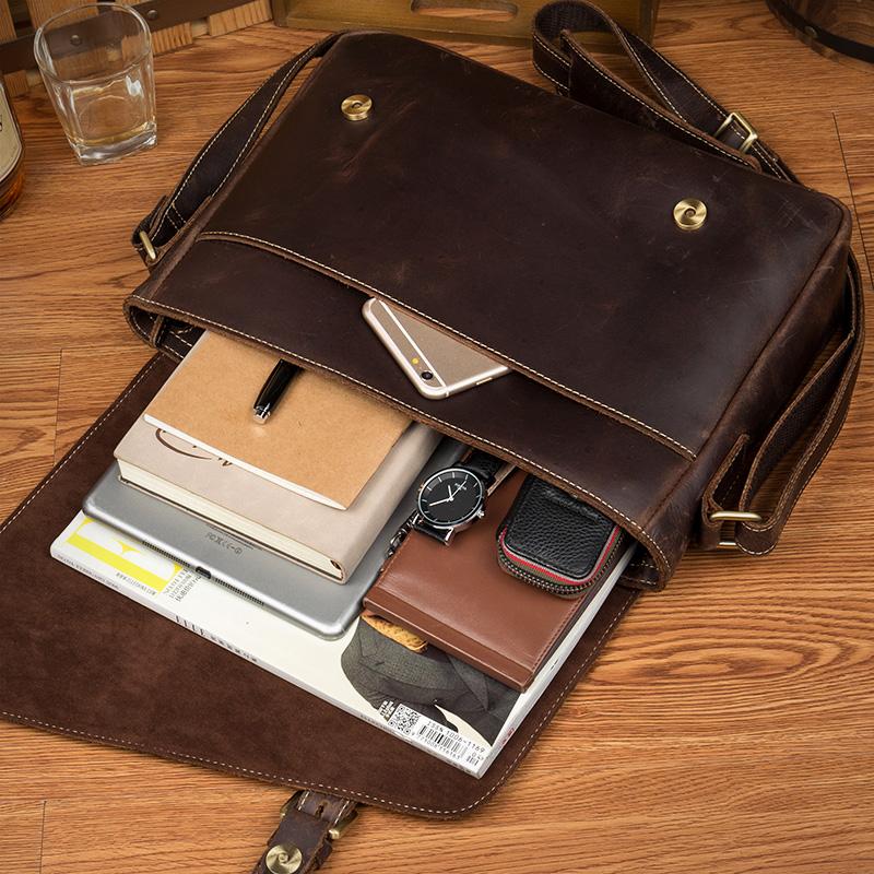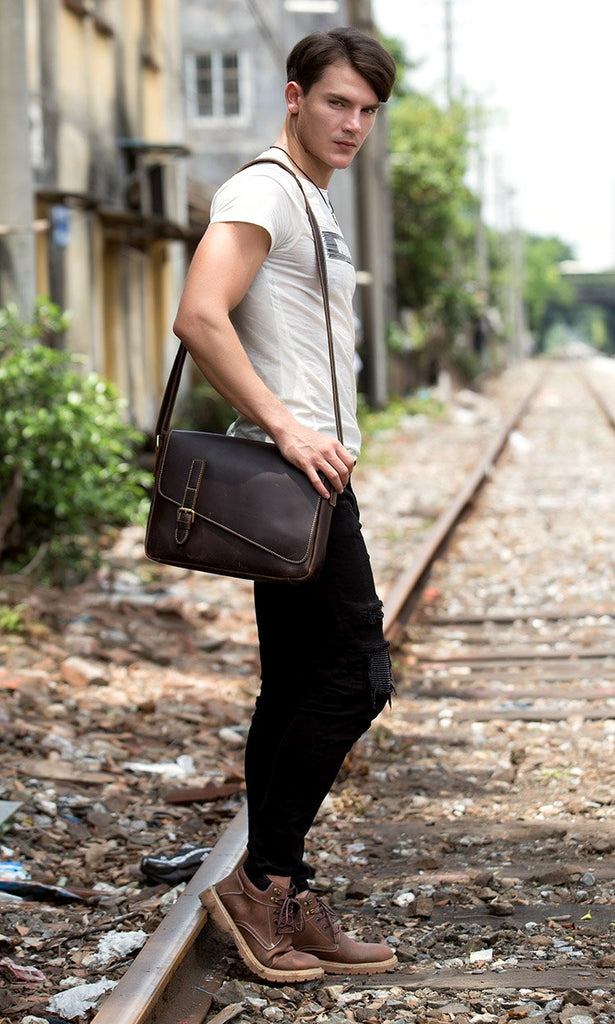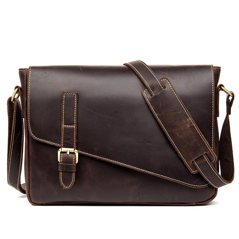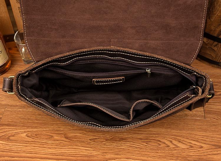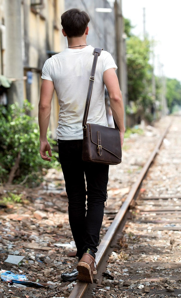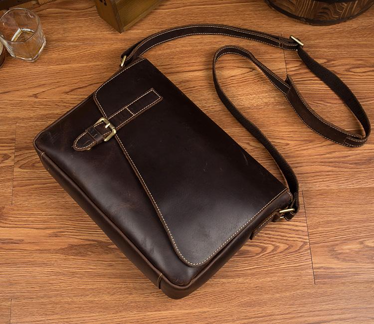 Design: Dark Brown Leather 13 inches Mens Small Messenger Bags Shoulder Bags for Men