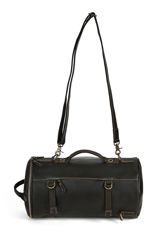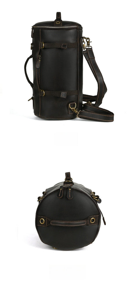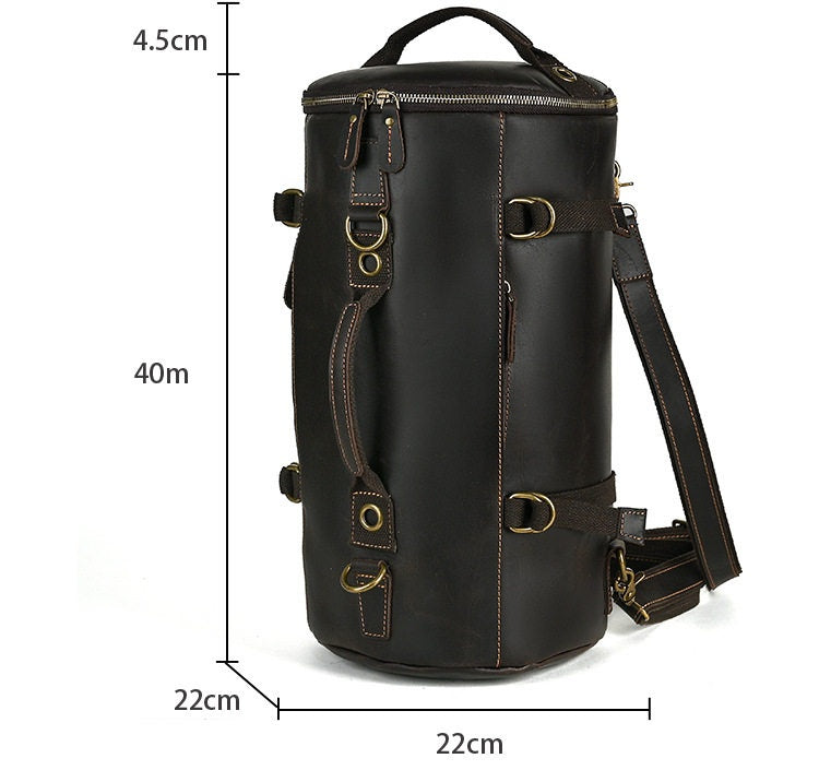Introducing the versatile and stylish Leather Bucket Backpack, a functional yet fashionable bag designed to adapt to your daily rhythm. This unique Brown Leather Convertible Backpack is crafted from premium full-grain crazy horse leather, featuring a distinct barrel-shaped silhouette that stands out with its rich deep brown finish and durable, textured look. Measuring 40cm x 22cm x 22cm and offering around 16L of capacity, it’s the perfect companion for everything from weekend trips to daily commutes. What sets it apart is its Backpack Crossbody Convertible design: with a detachable shoulder strap, it easily transforms from a comfortable backpack to a sleek shoulder bag, making it as practical for a weekend away as it is for a day at the office or campus.