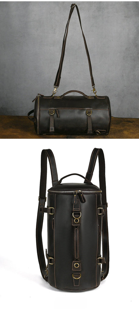 Style: Dark Brown Leather Convertible Backpack Bucket Backpack Crossbody Convertible
