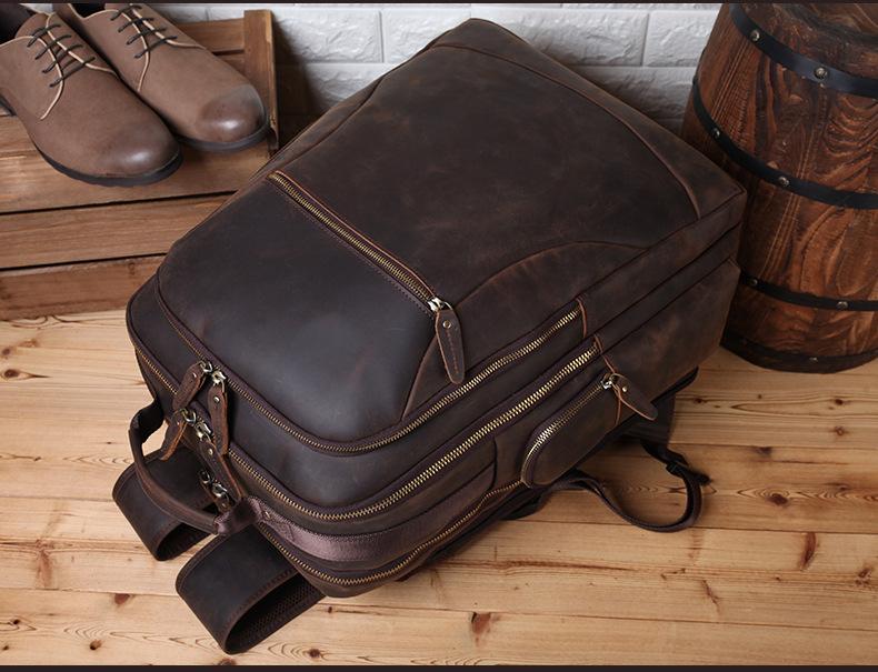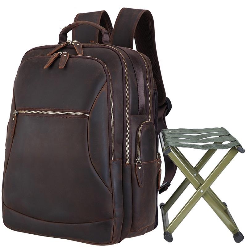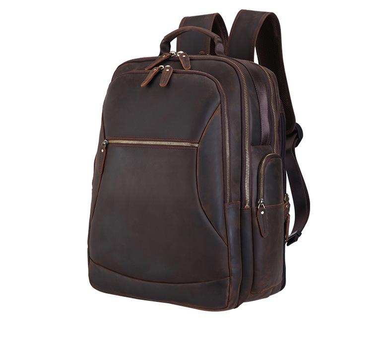 Design: Dark Brown Leather Men's 17-inch Computer Backpack Large Travel Backpack Large College Backpack For Men