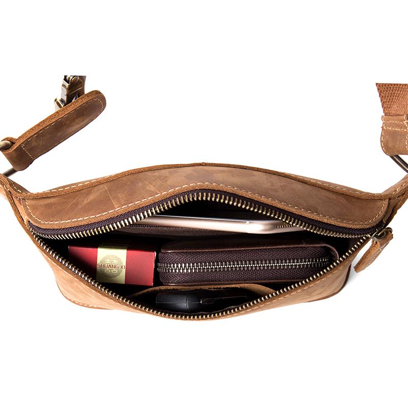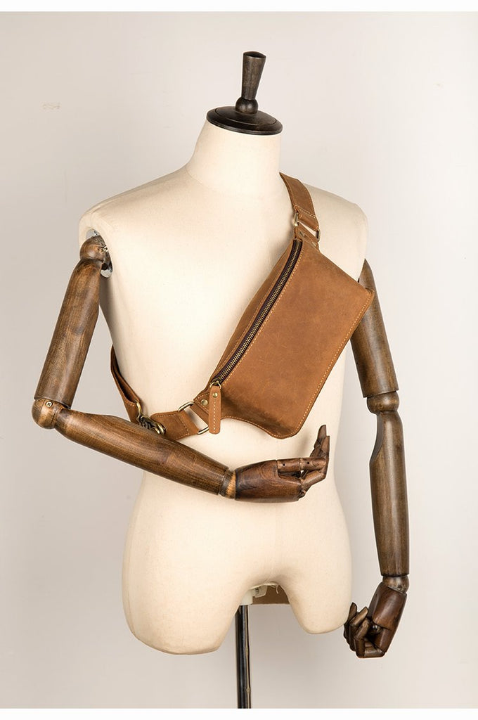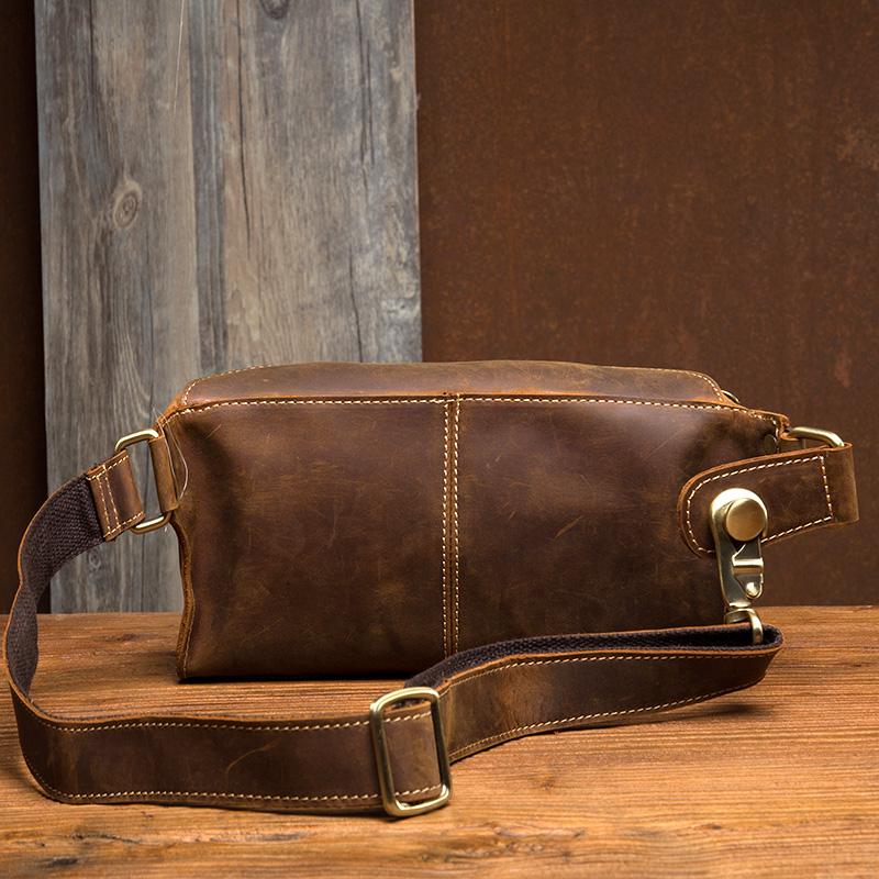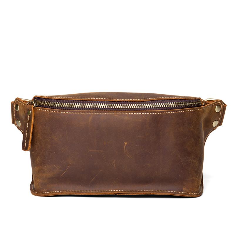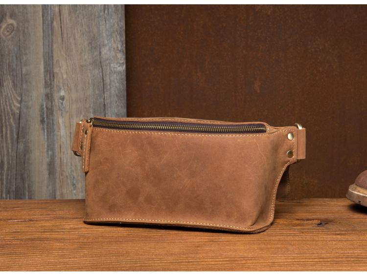 Design: Dark Brown Leather Mens 8 inches Light Brown Waist Bag Hip Pack Belt Bag Bumbag for Men