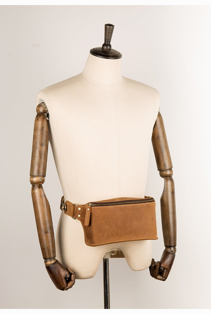 Style: Dark Brown Leather Mens 8 inches Light Brown Waist Bag Hip Pack Belt Bag Bumbag for Men