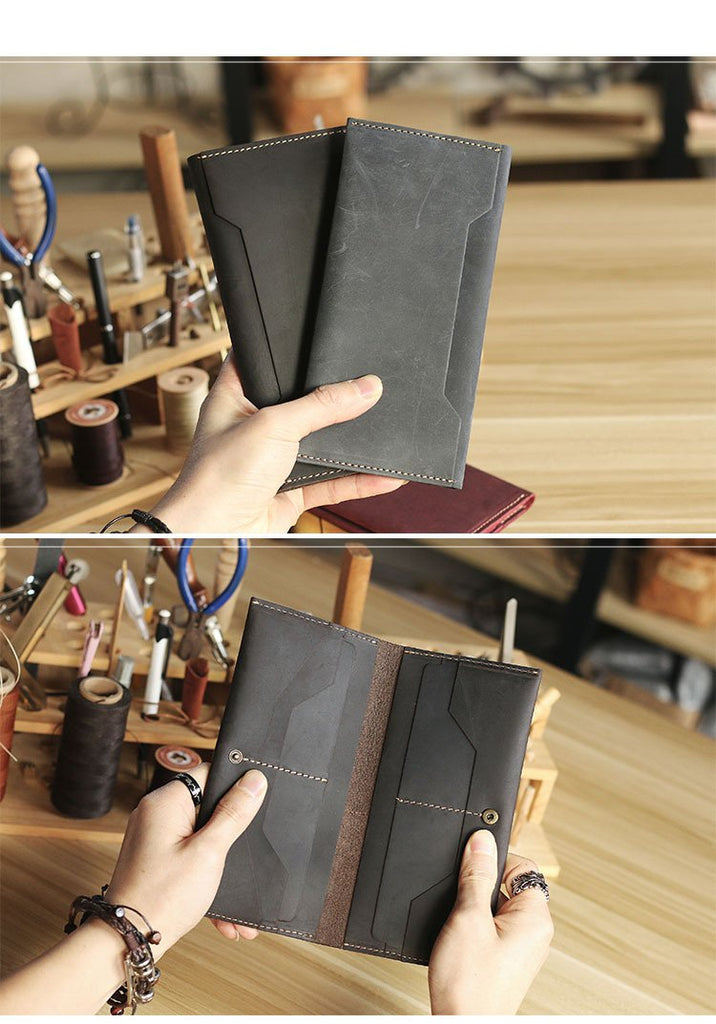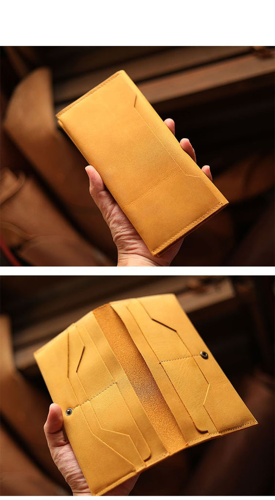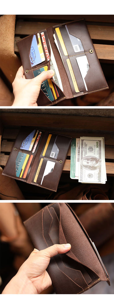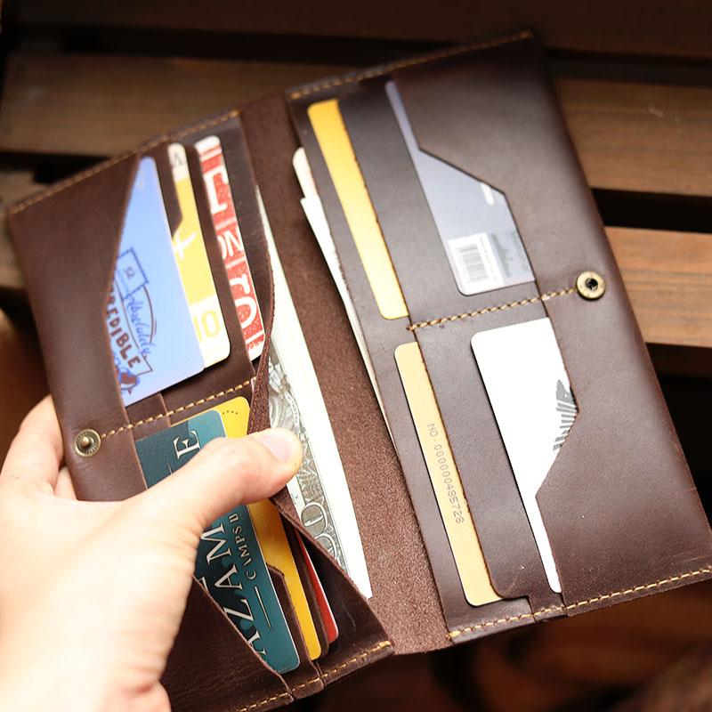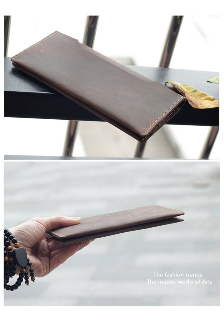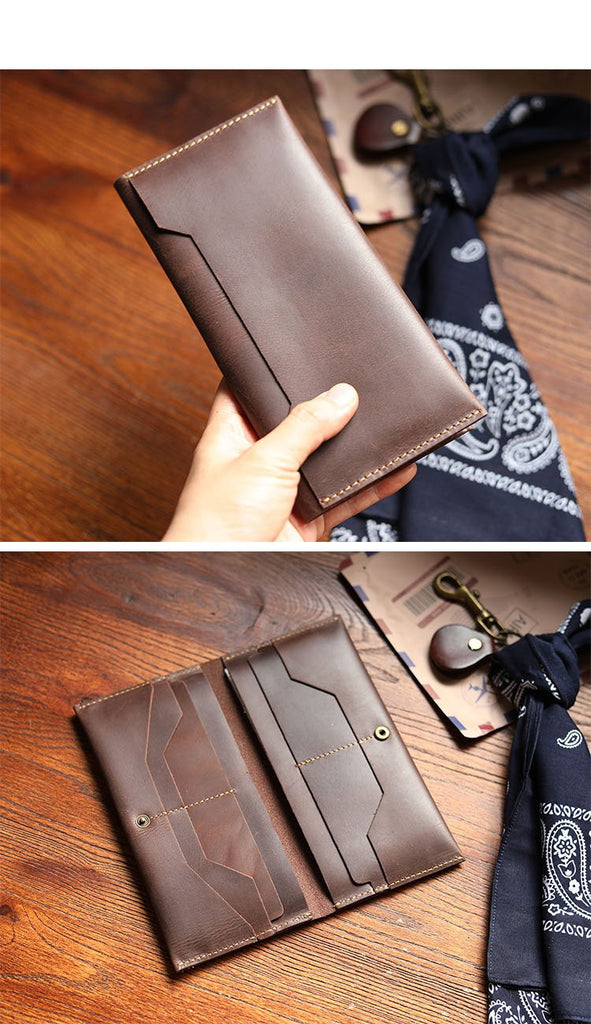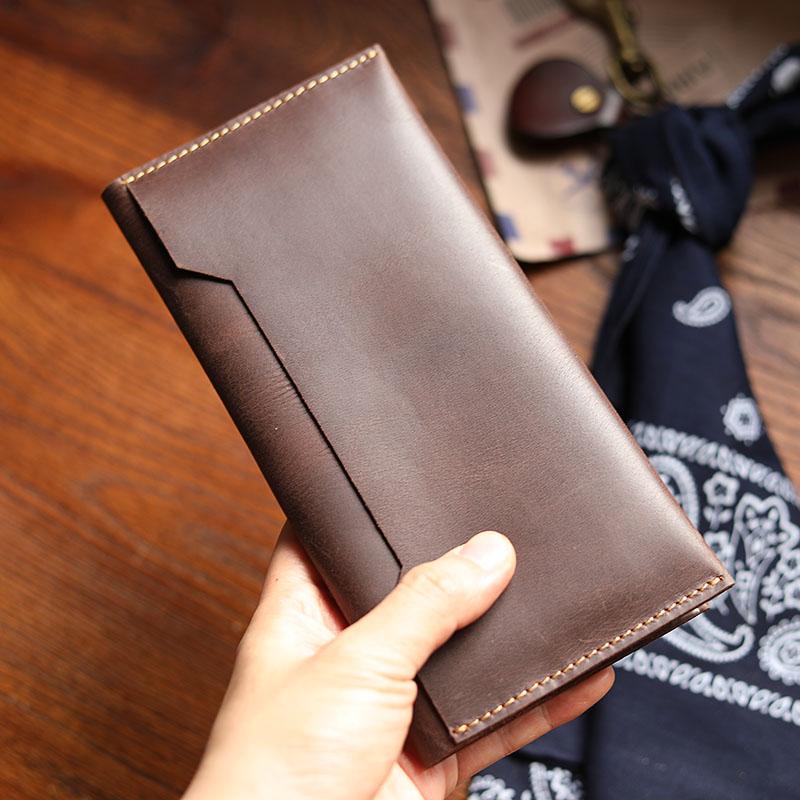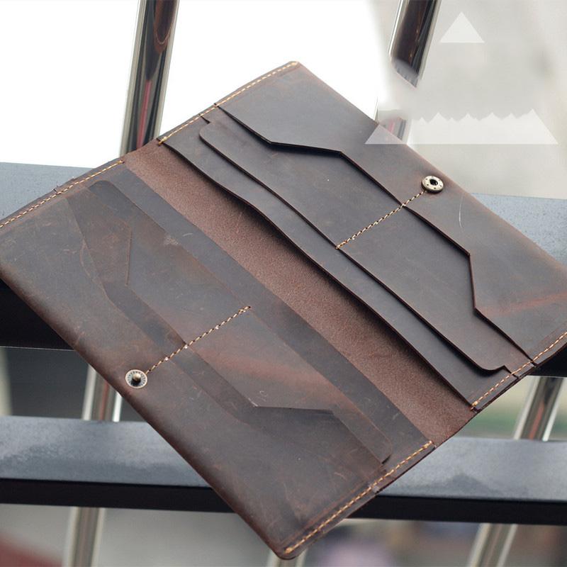 Style: Vintage Brown Leather Mens Long Wallet Bifold Long Wallet Brown Phone Clutch Wallet For Men