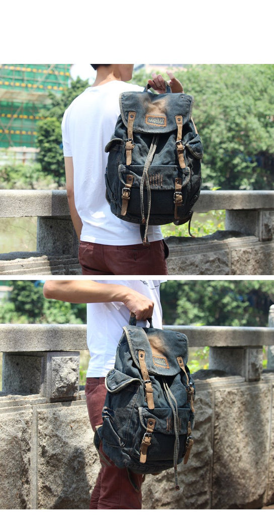 Style: Denim Blue Mens 12 inches Backpack School Backpack Blue Jean Travel Backpack For Men
