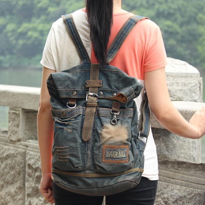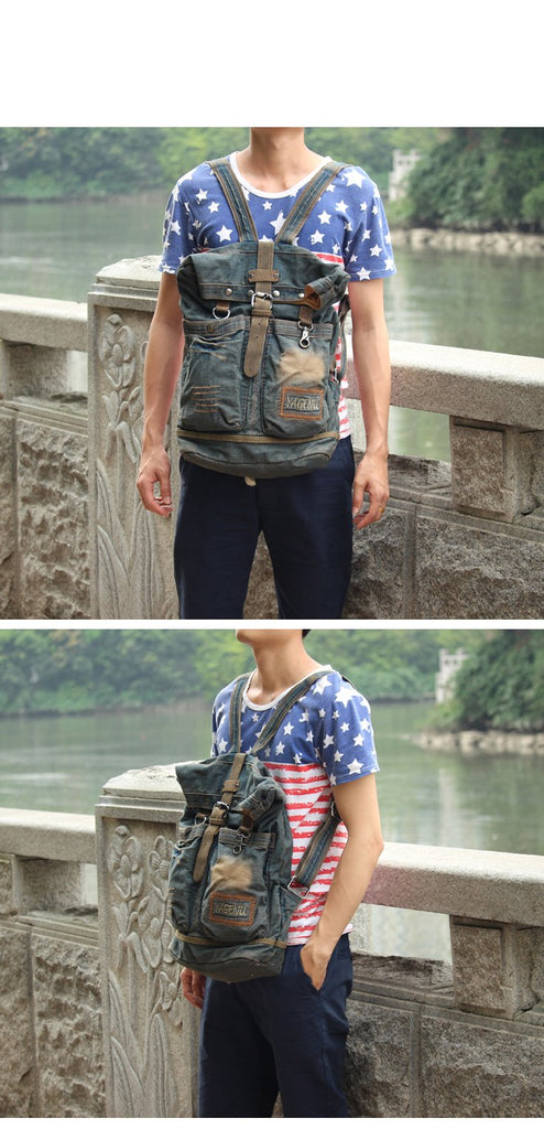 Style: Denim Blue Mens 12 inches Backpack School Backpacks Blue Jean Travel Backpack For Men