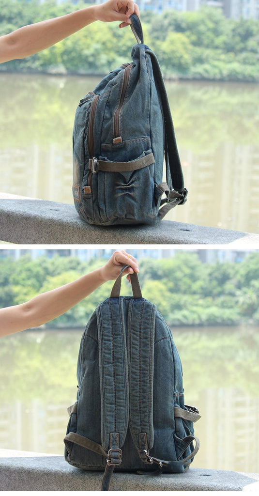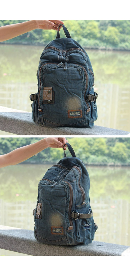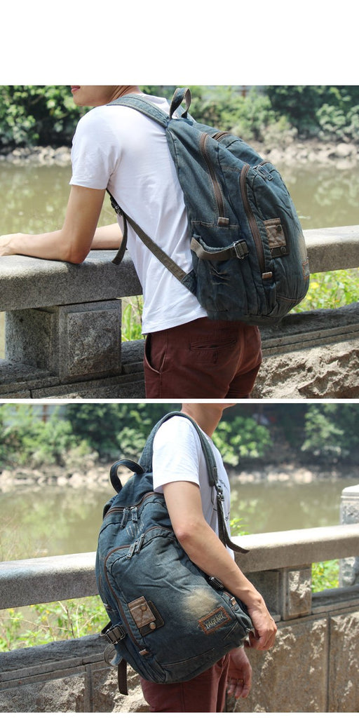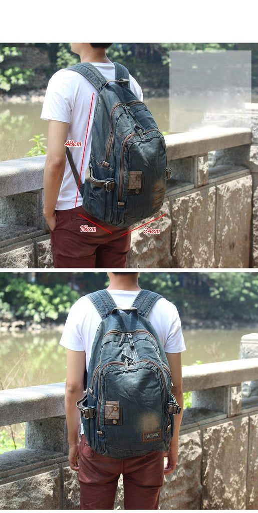 Style: Denim Blue Mens 15 inches Backpack Laptop Backpack Jean Travel Backpacks For Men