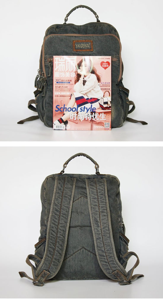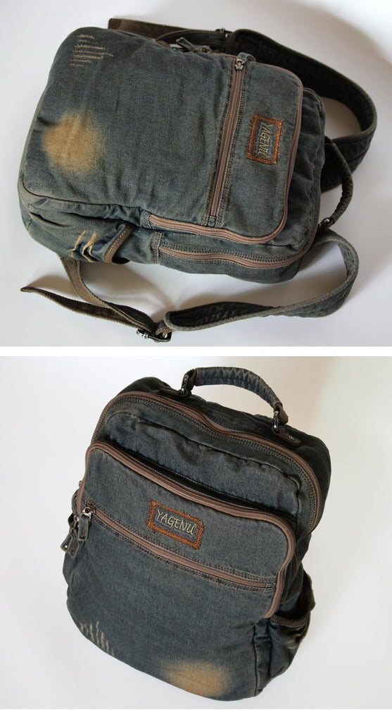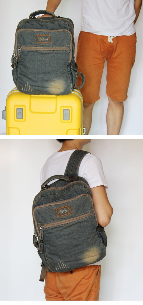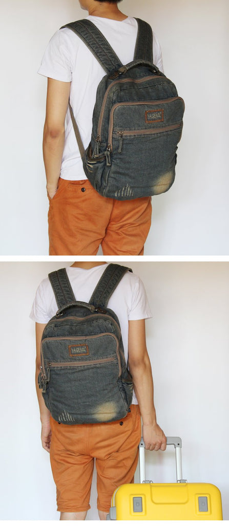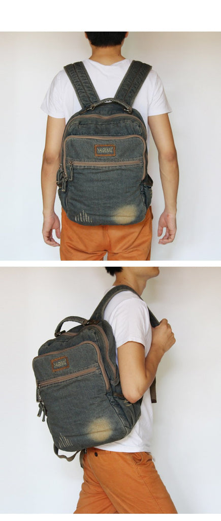 Design: Denim Blue Mens 16 inches Backpack Multifunctional Backpack Jean Travel Backpacks For Men
