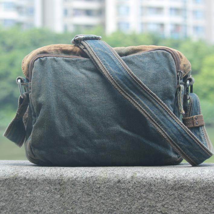 Design: Denim Blue Mens Casual Small Messenger Bag Jean Postman Bag Courier Bag For Men