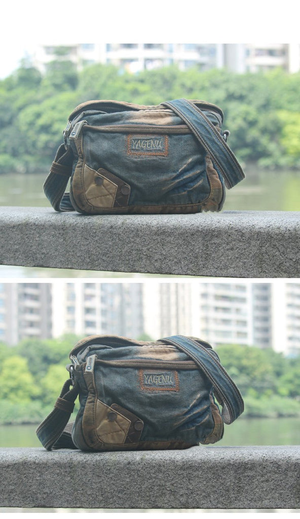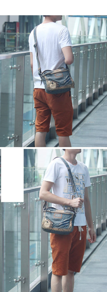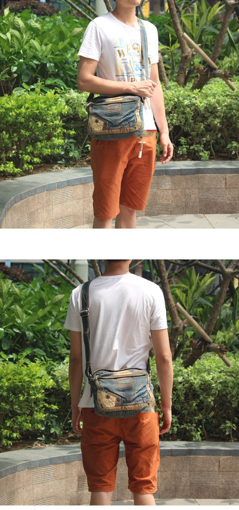 Style: Denim Blue Mens Casual Small Messenger Bag Jean Postman Bag Courier Bag For Men