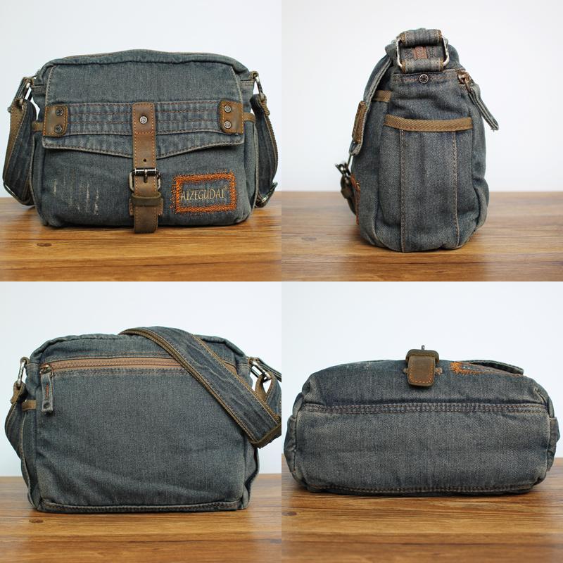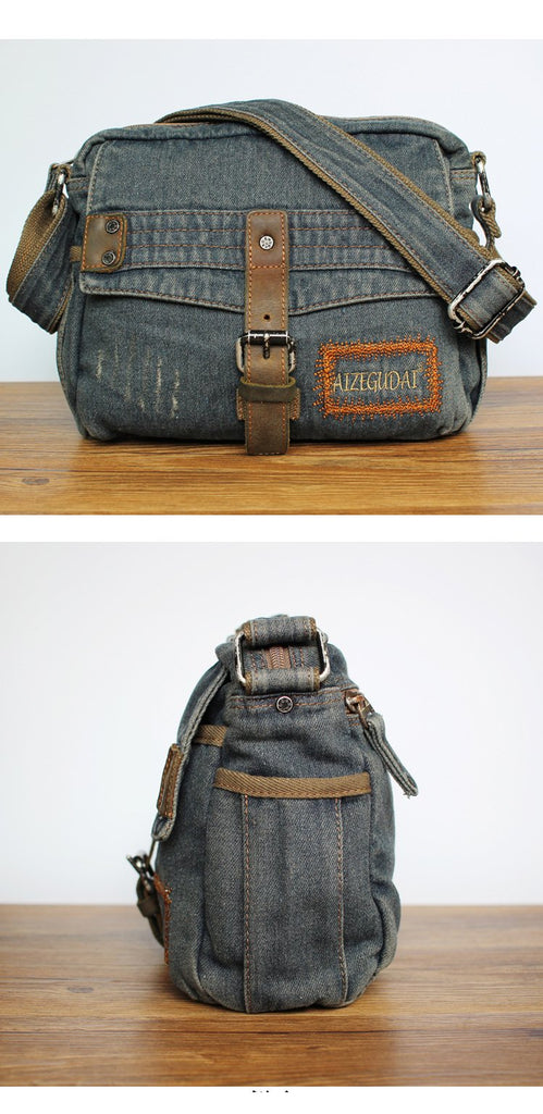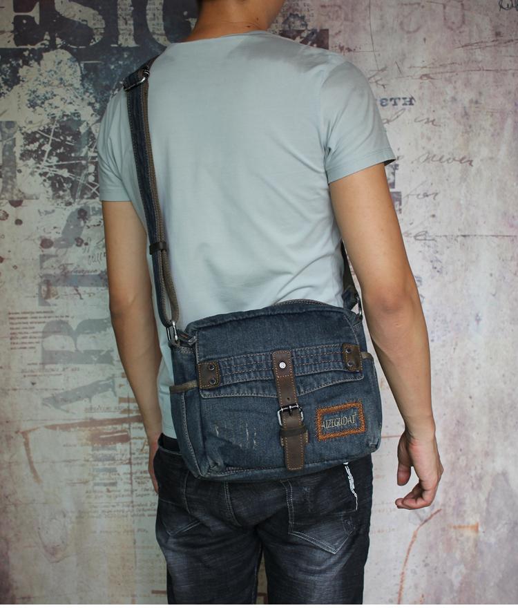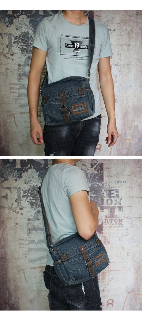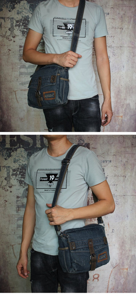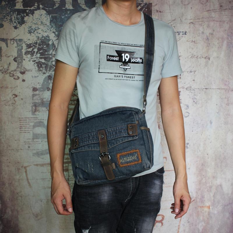 Style: Denim Blue Mens Small Messenger Bag Blue Jean Postman Bag Courier Bag For Men