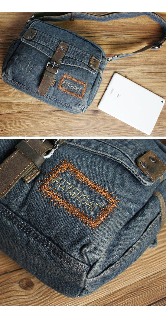 Design: Denim Blue Mens Small Messenger Bag Blue Jean Postman Bag Courier Bag For Men
