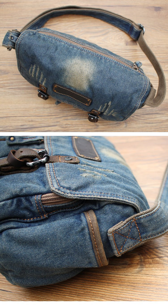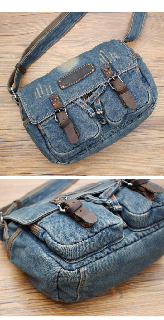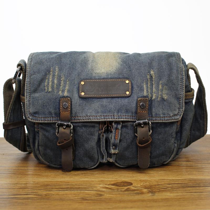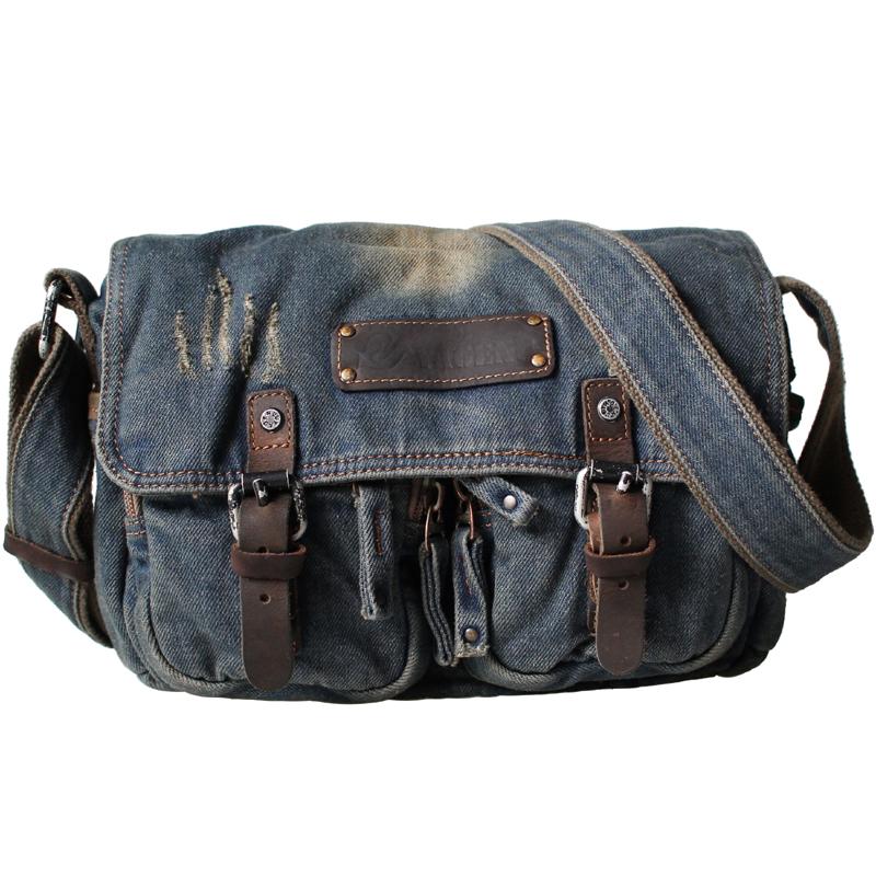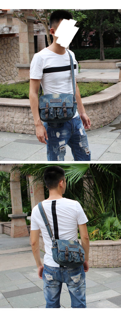 Style: Denim Blue Mens Small Courier Bag Messenger Bag Blue Jean Postman Bag For Men