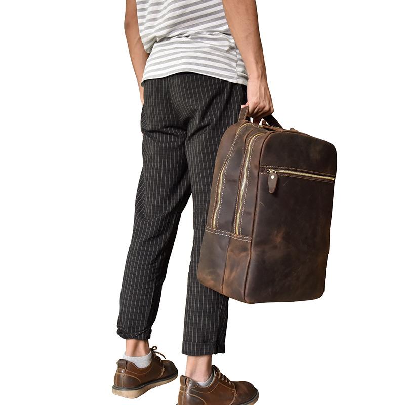 Design: Genuine Leather Mens Cool Backpack Sling Bag Large Black Travel Bag Hiking Bag for men