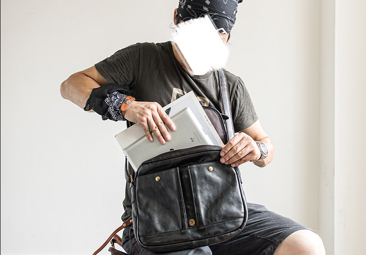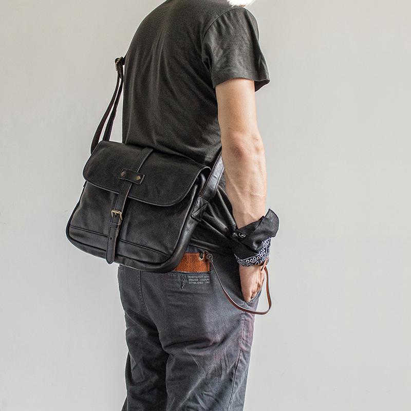 Design: Genuine Leather Mens Cool Messenger Bag iPad Bag Chest Bag Bike Bag Cycling Bag for men