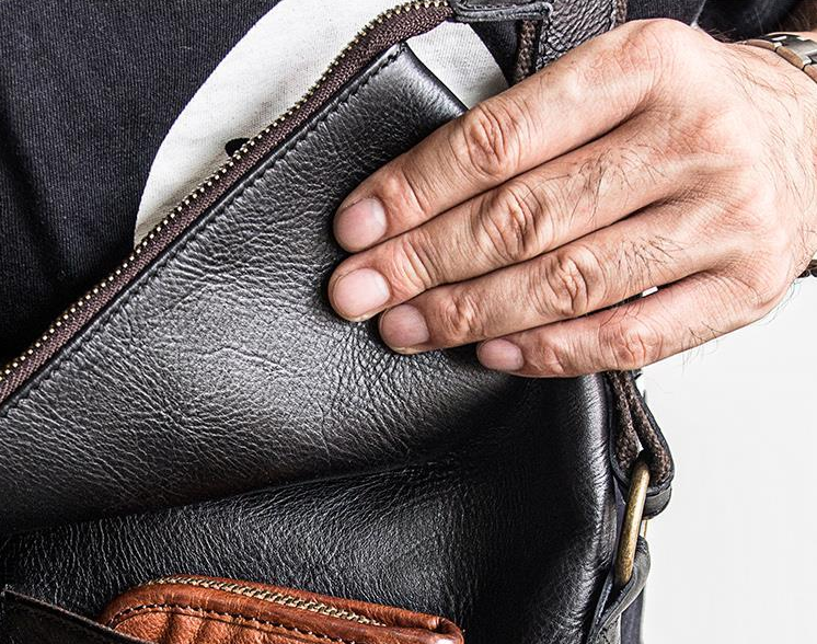 Slots: 1 zipper slot, 1 laptop slot, 1 book slot, 3 wallet slots, 1 phone slot