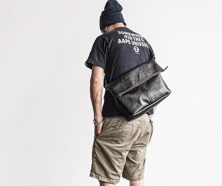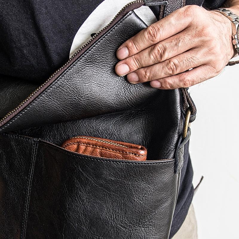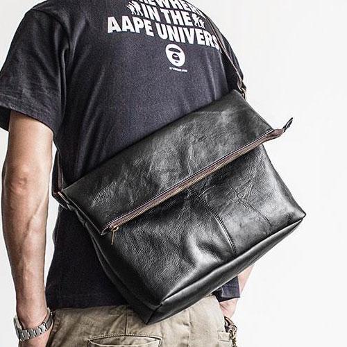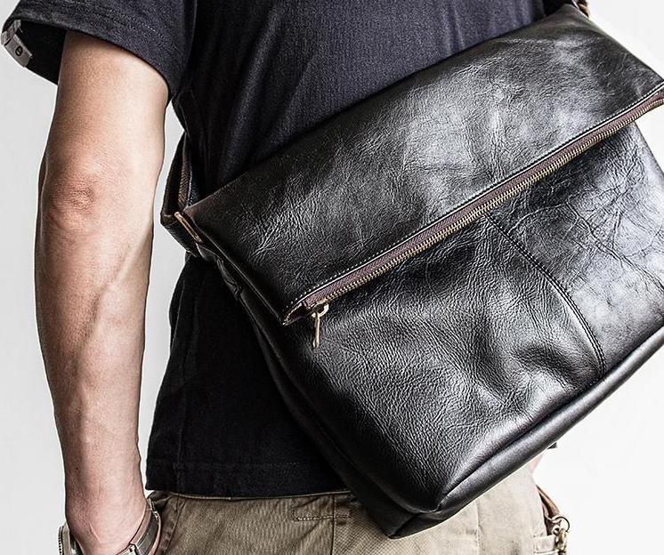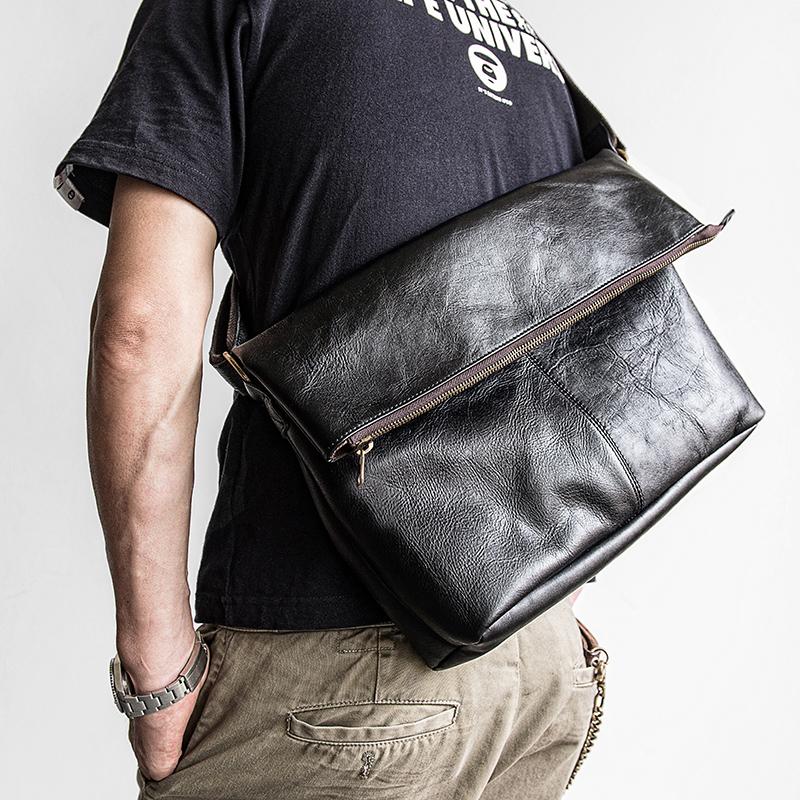 Design: Genuine Leather Mens Cool Messenger Bag iPad Bag Chest Bag Bike Bag Cycling Bag for men