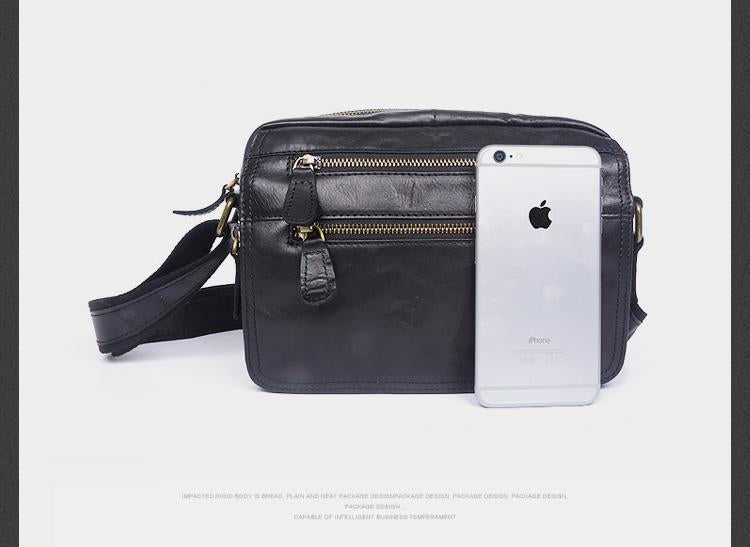 Design: Genuine Leather Mens Small Cool Messenger Bag Chest Bag Bike Bag Cycling Bag for men