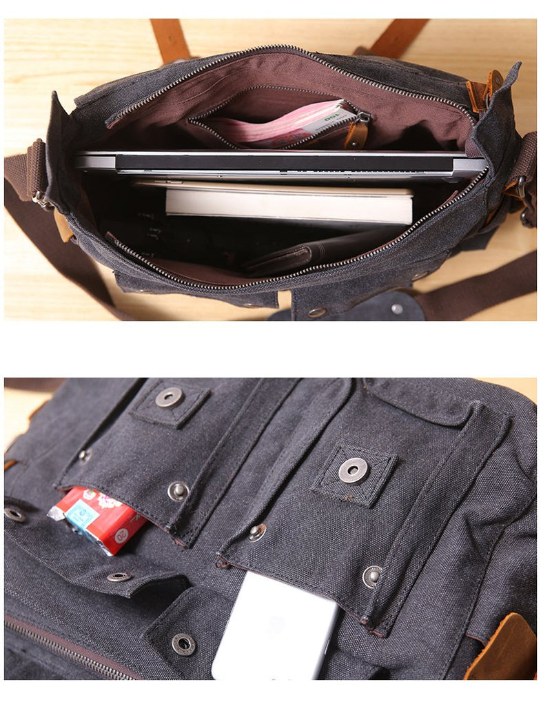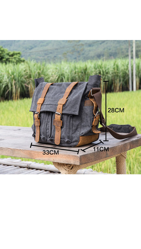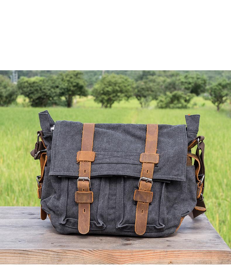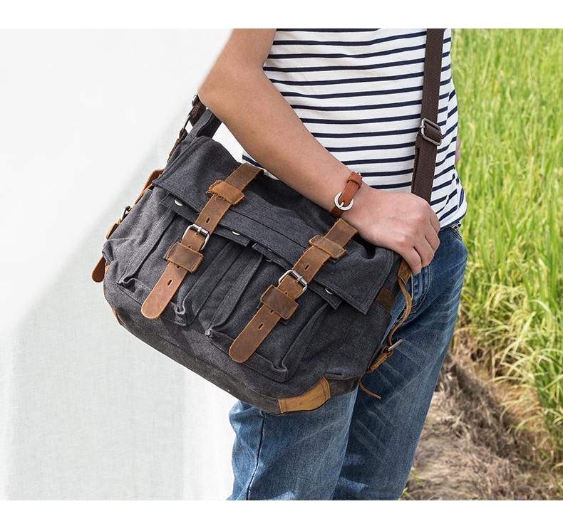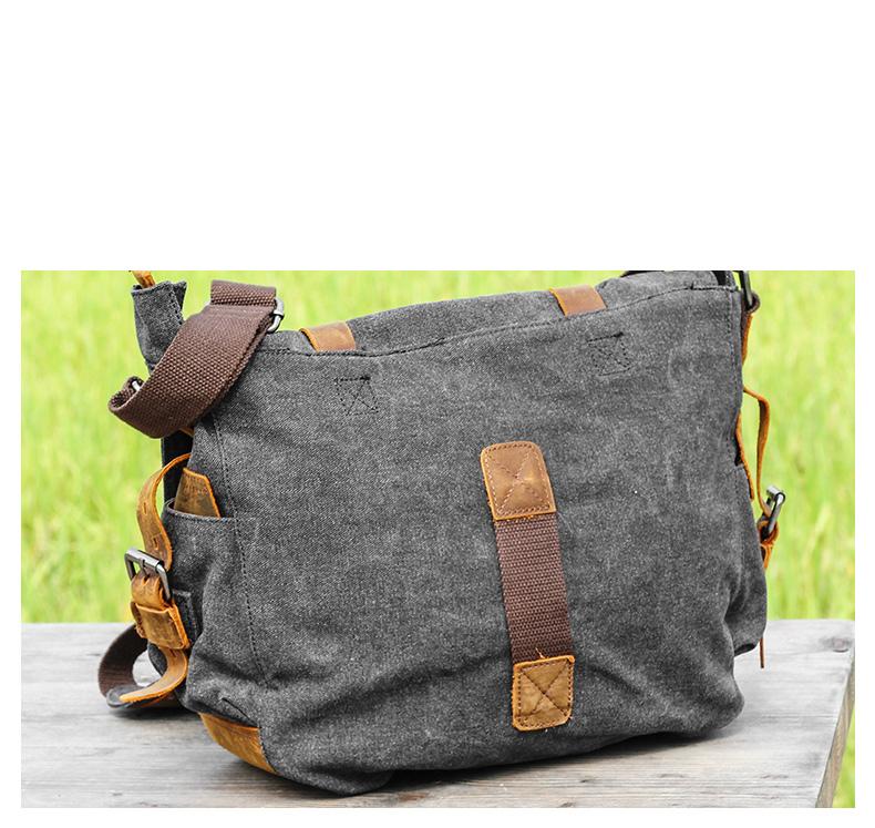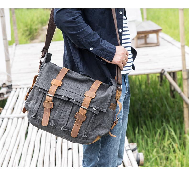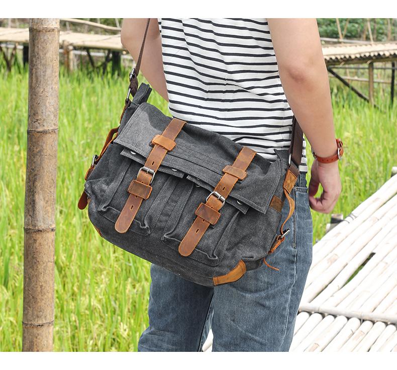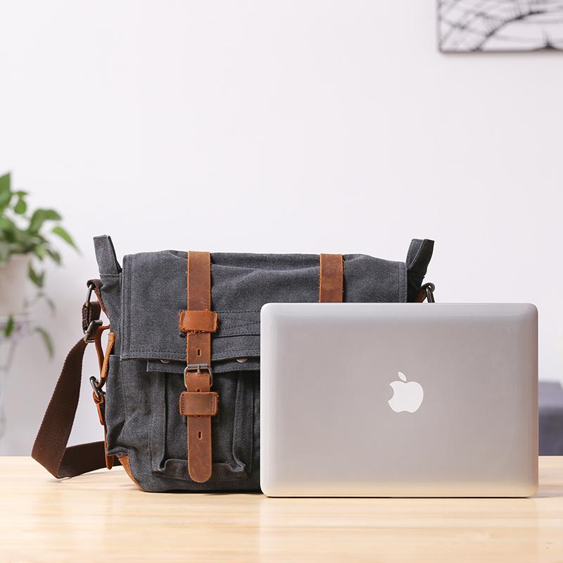 Design: 14'' Canvas And Leather Messenger Bag Mens Canvas Courier Bag Canvas Messenger Bags