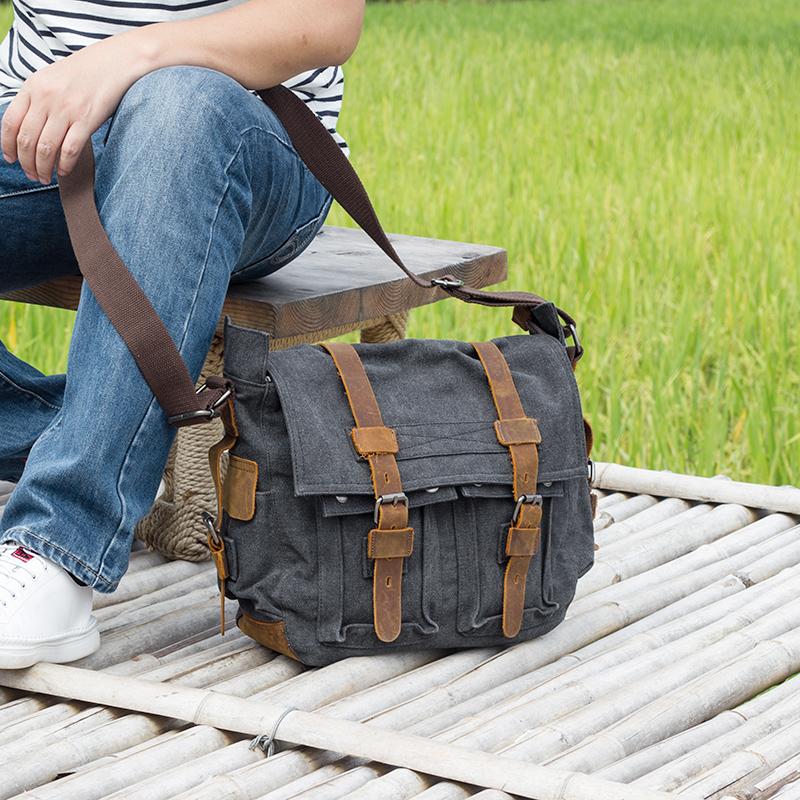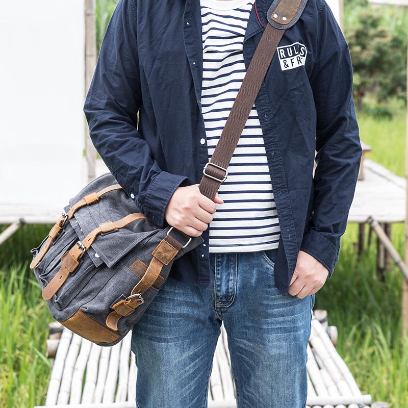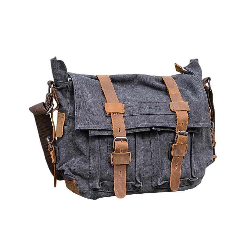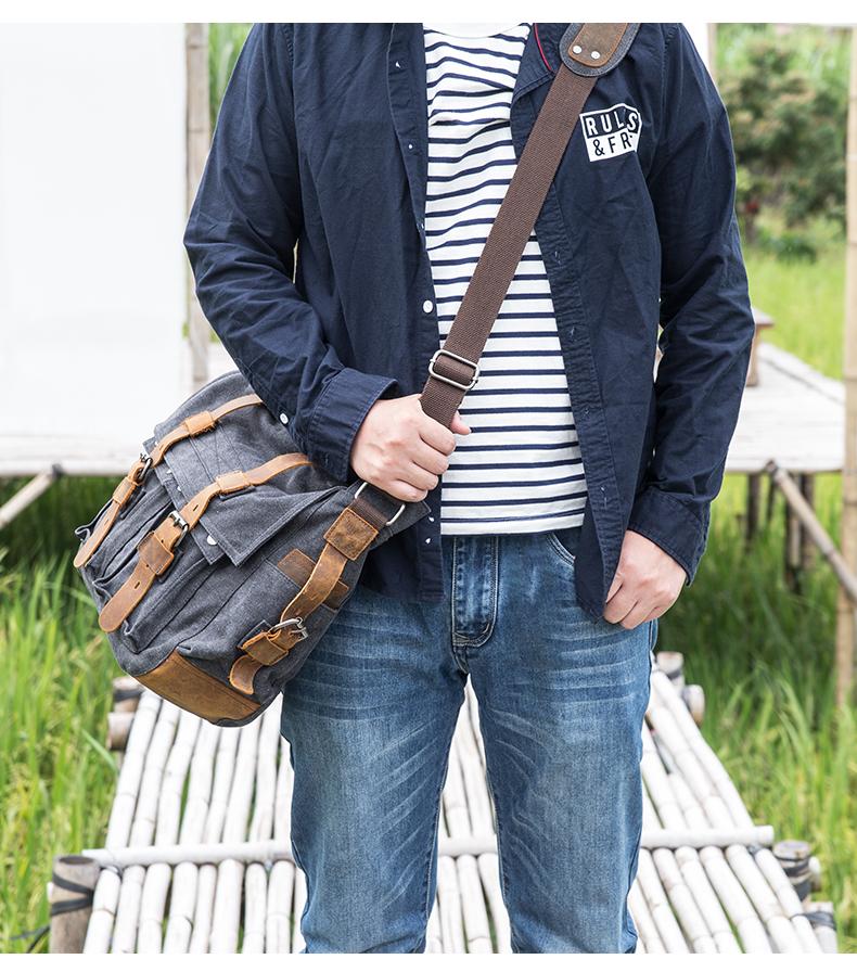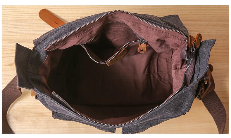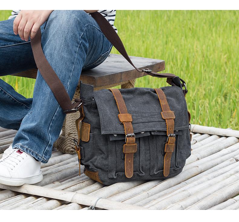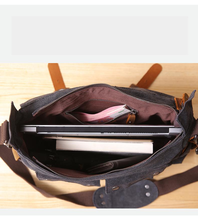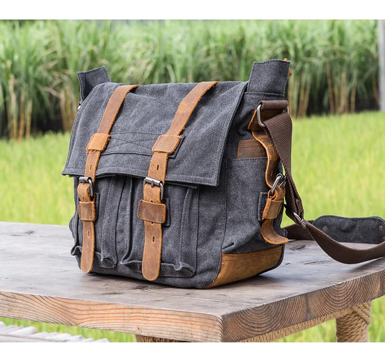 Design: 14'' Canvas And Leather Messenger Bag Mens Canvas Courier Bag Canvas Messenger Bags