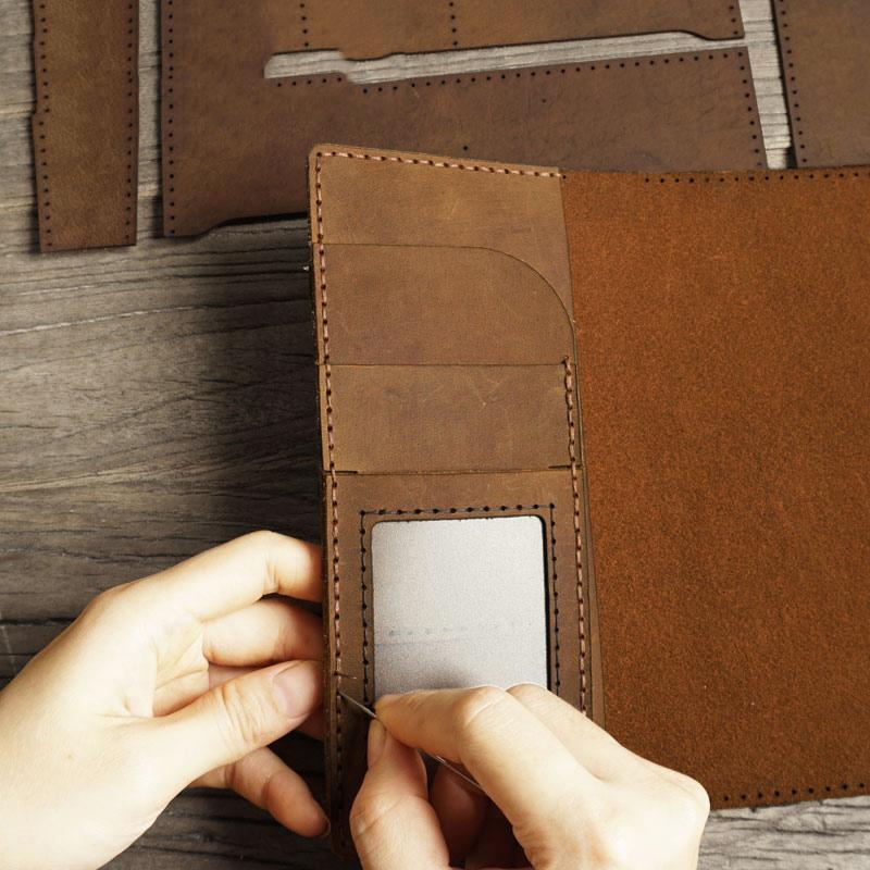 Style: Handmade Brown Leather Mens Bifold Long Wallet Lots Cards Travel Long Wallet for Men