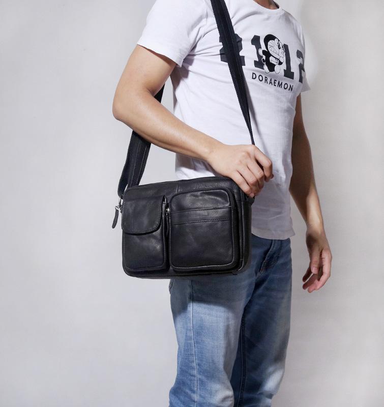 Design: Genuine Leather Mens Cool Messenger Bag Chest Bag Bike Bag Cycling Bag for men