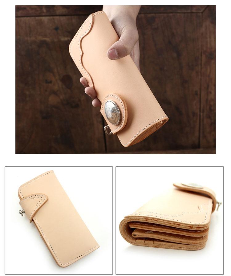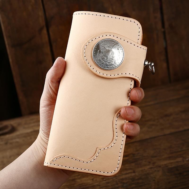 Handmade Leather Biker Chain Wallet Mens Cool Chain Long Wallets with Chain