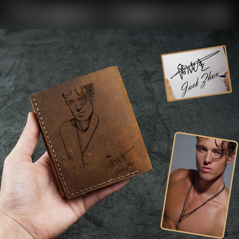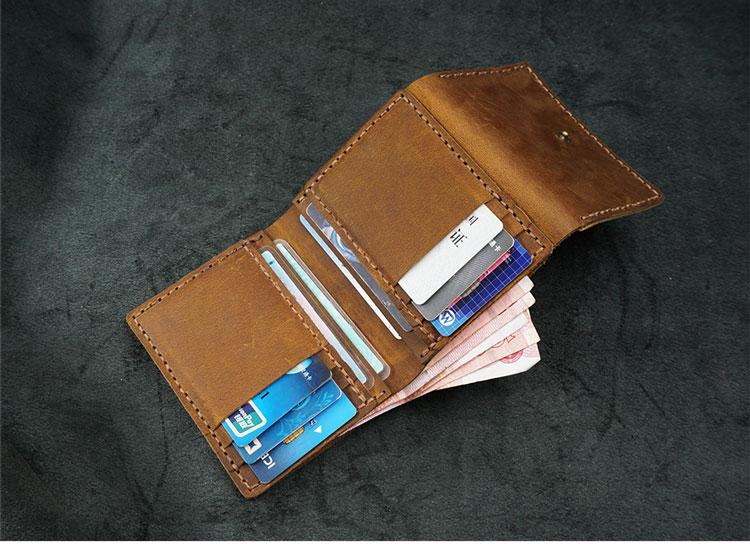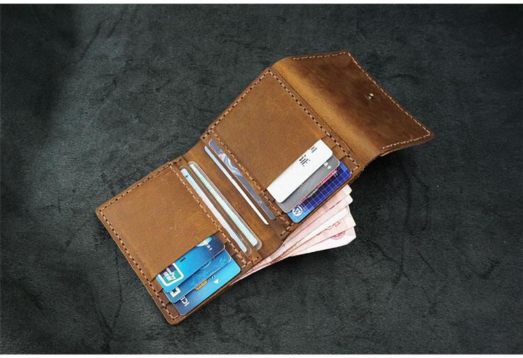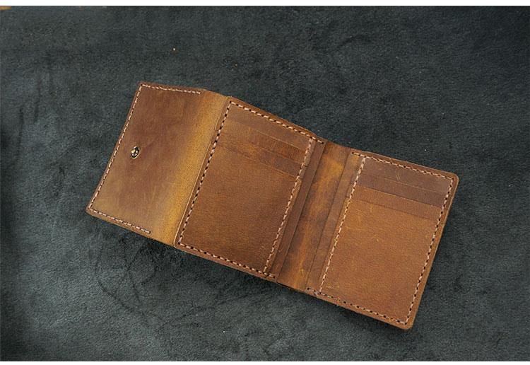 Design: Handmade Brown Leather Mens Trifold Billfold Wallets With License Slot Small Wallet for Men